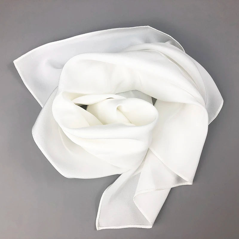 Saashi Real Silk Square Scarf for Women White Solid Crepe Hijab Bandana Hair Shawl