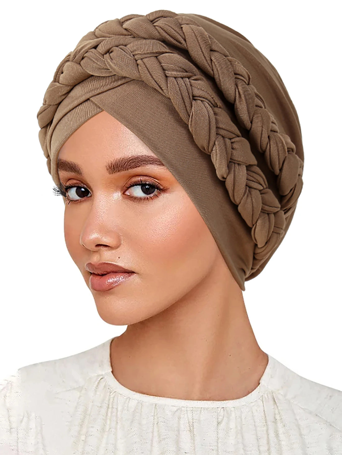 Saashi Trendy Braided Muslim Turban Cap for Women Solid Color Hijab Head Wrap Scarf