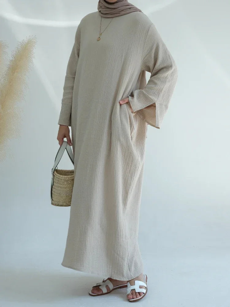 Saashi Cotton Linen Summer Beach Dress for Women Loose Midi Tunic Cover-Up S-5XL