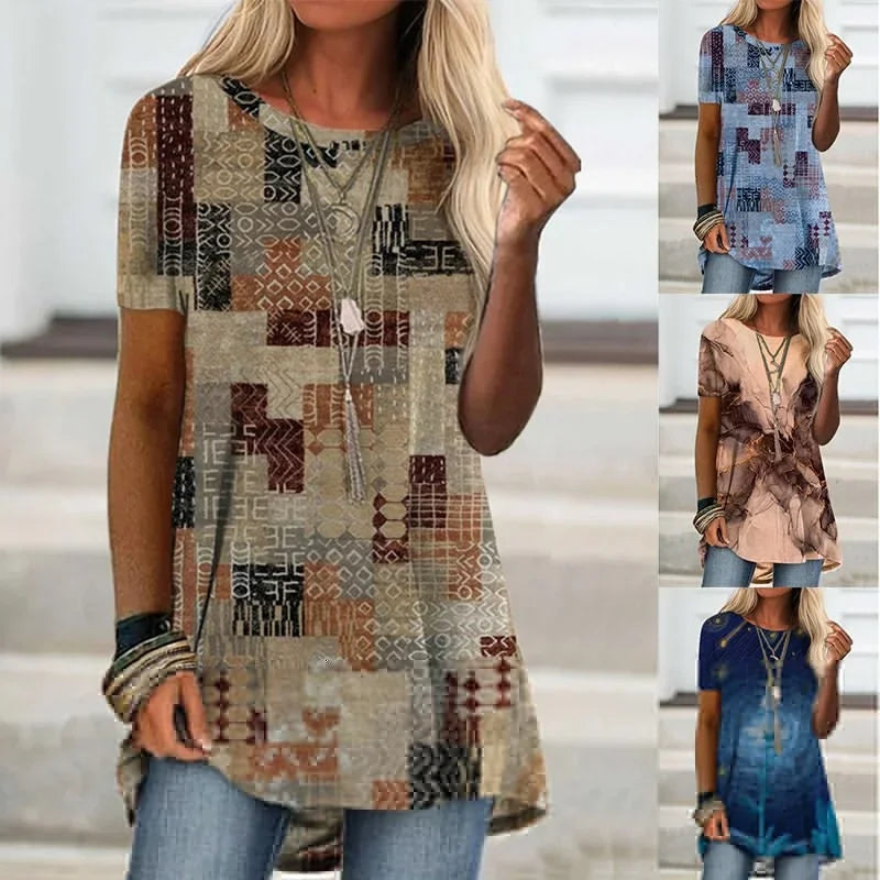 Saashi Floral Graphic Blouse for Women Casual Loose O-Neck Tunic Top Short Sleeve S-5XL