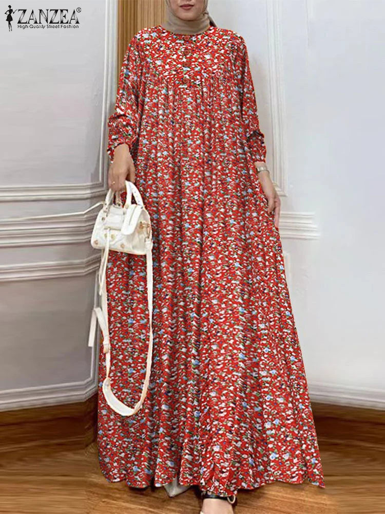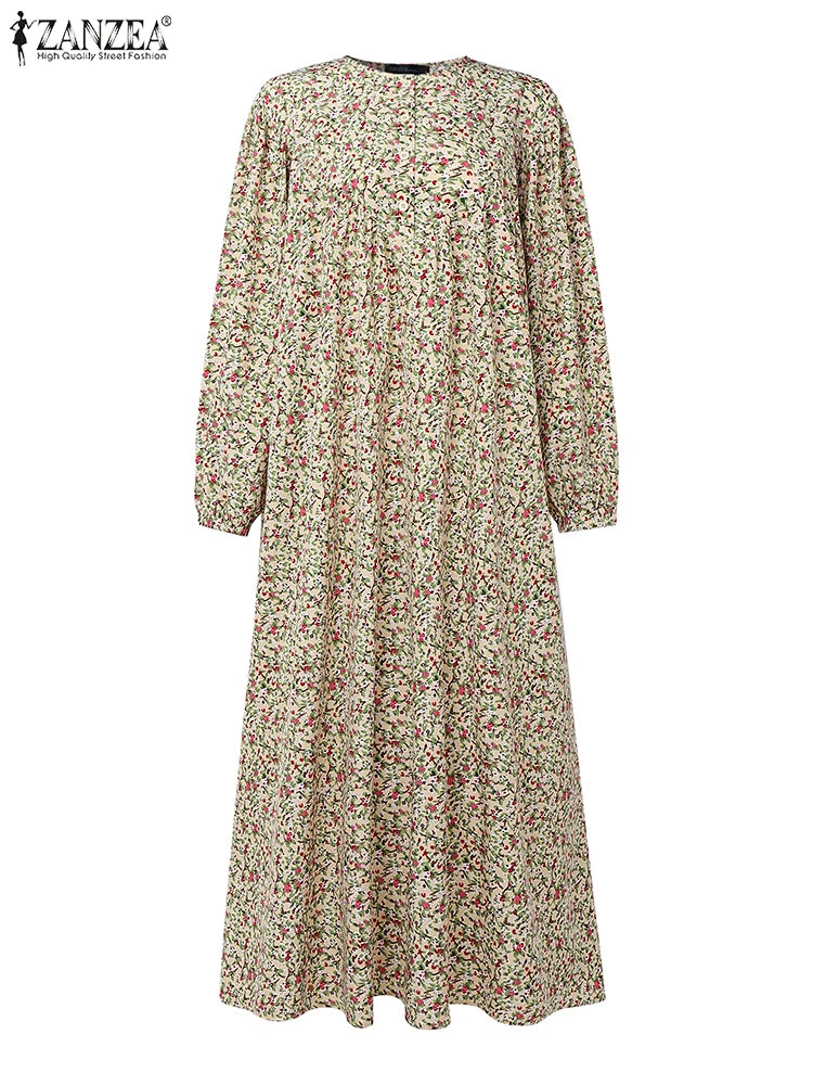 Saashi Autumn Printed Muslim Abaya Dress for Women Long Sleeve Casual Kaftan Dubai Sundress
