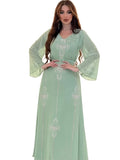 Saashi Eid Muslim Abaya Party Dress for Women with Diamond Lace-Up Jalabiya Robe