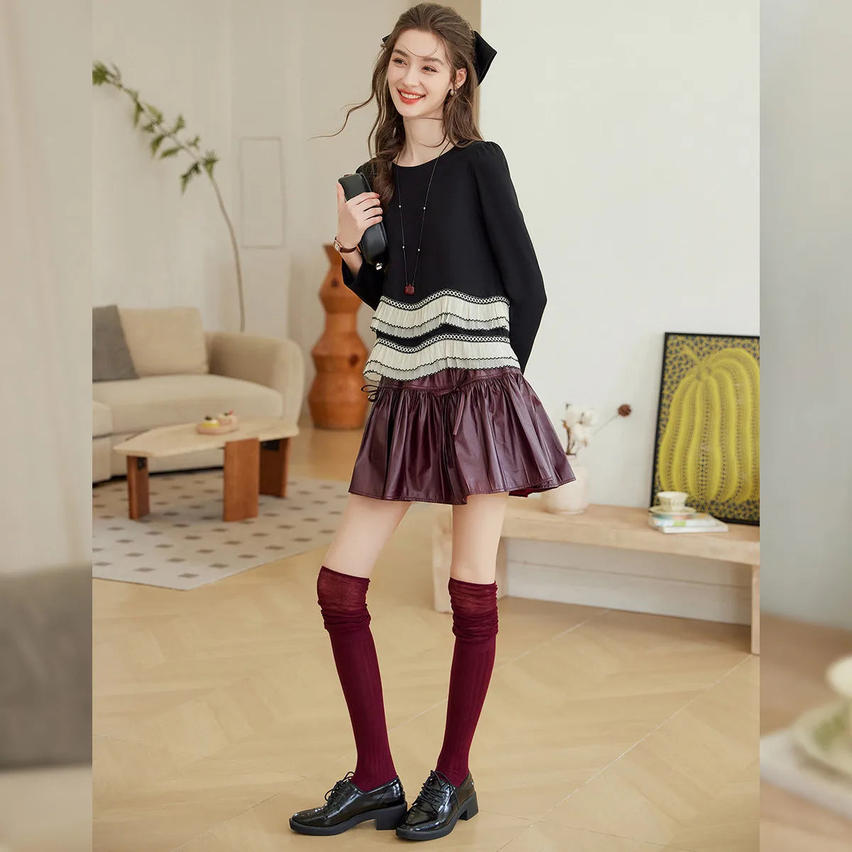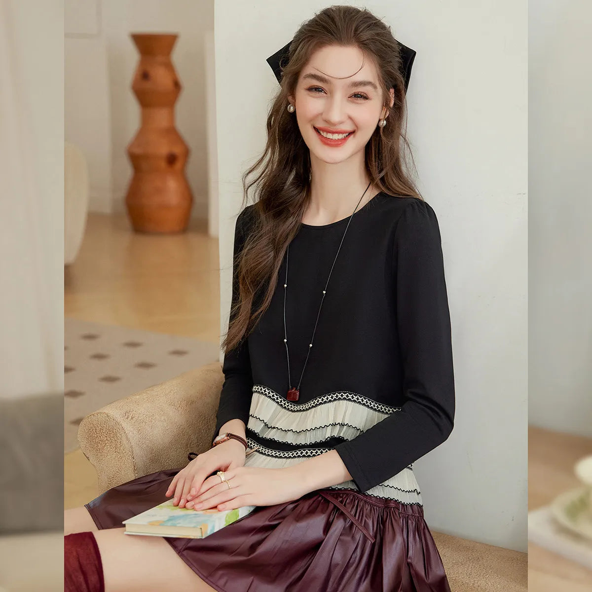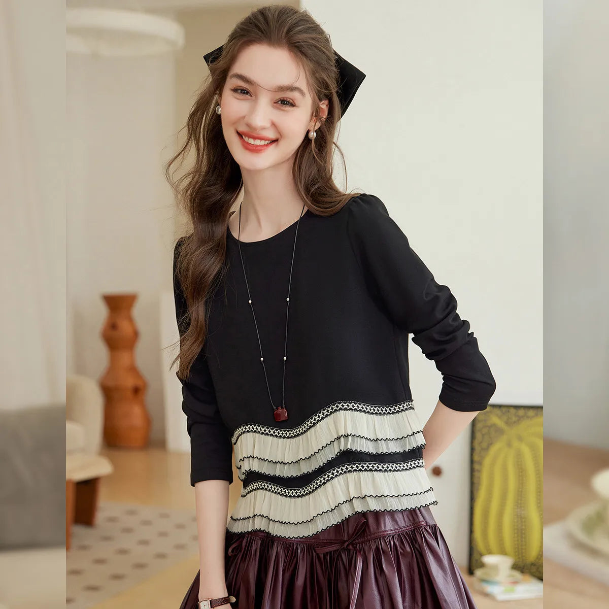 Saashi Elegant Contrast Color Flounced Edge Short Sleeve T-Shirt for Women with Soft Stretch Round Neck Design