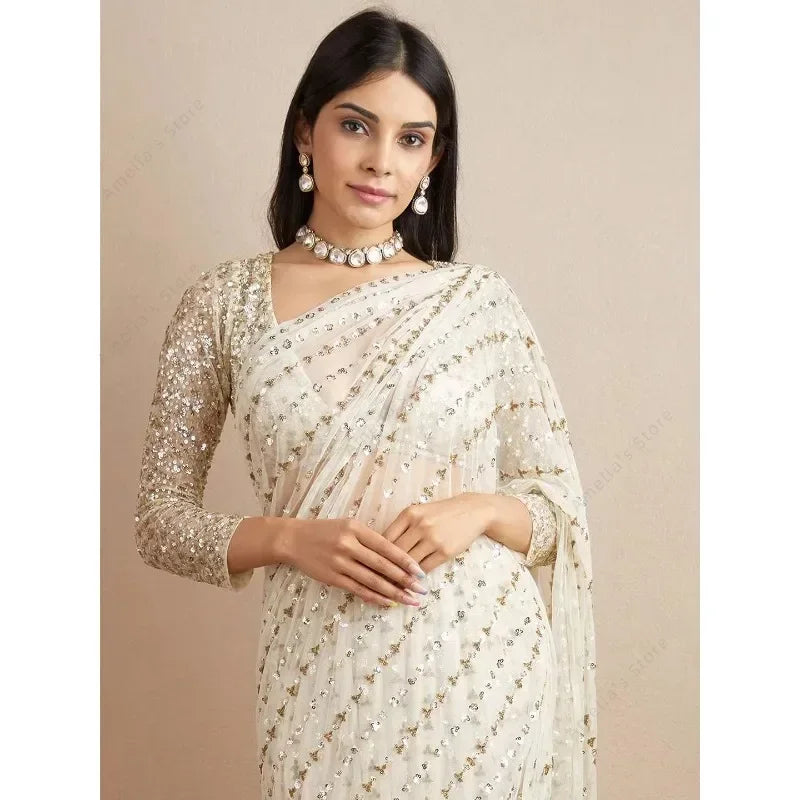 Saashi Ethnic Costm – Sequined Bollywood Sari – Indian Dance Stage Performance Outfit