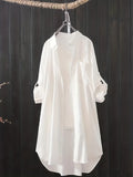 Saashi Plus Size Solid Button Up Blouse for Women with Roll-Up Sleeves and Stretch Fit
