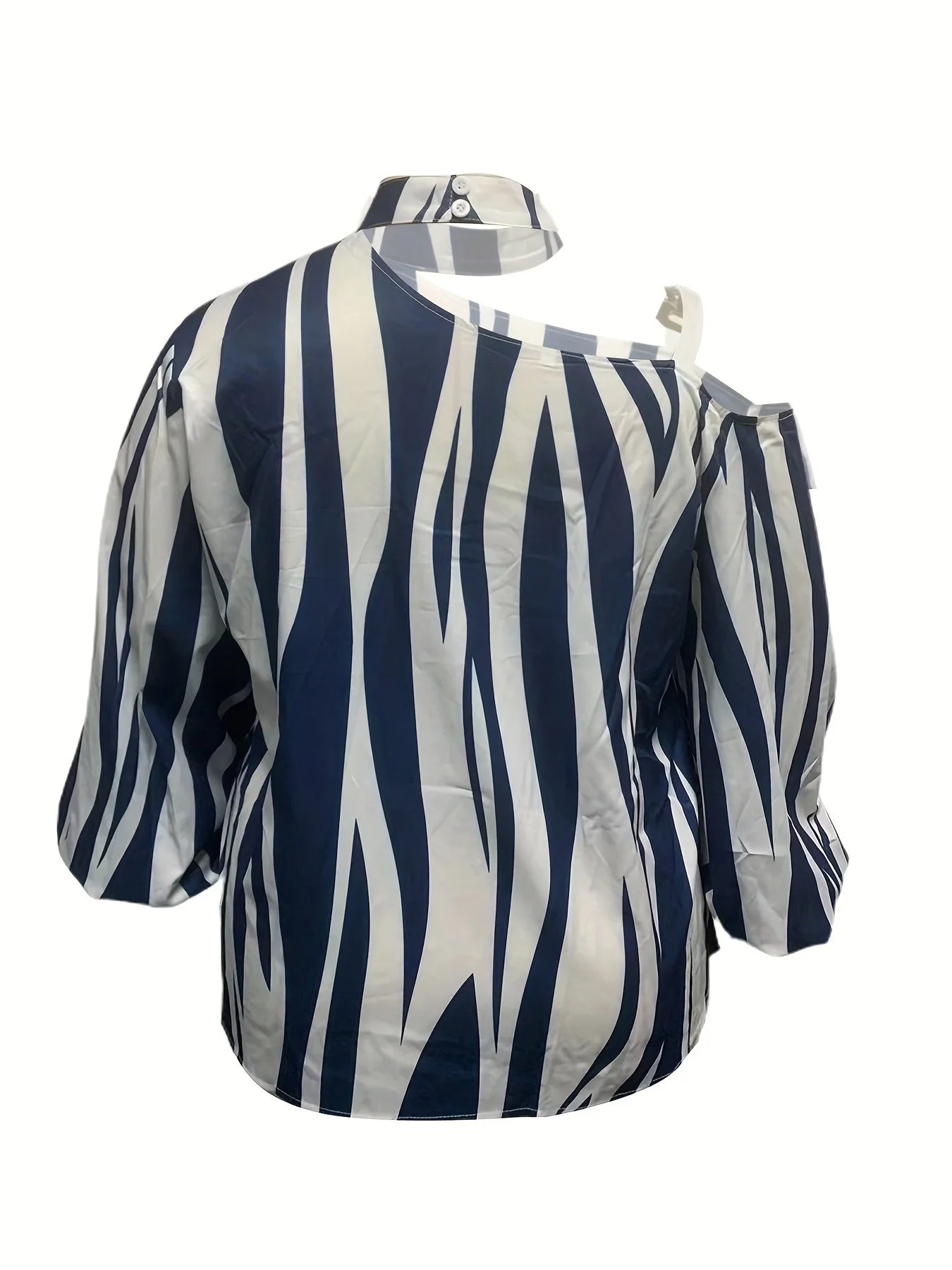 Saashi Plus Size Women's One Shoulder Long Sleeve Casual Fashion Blouse Top