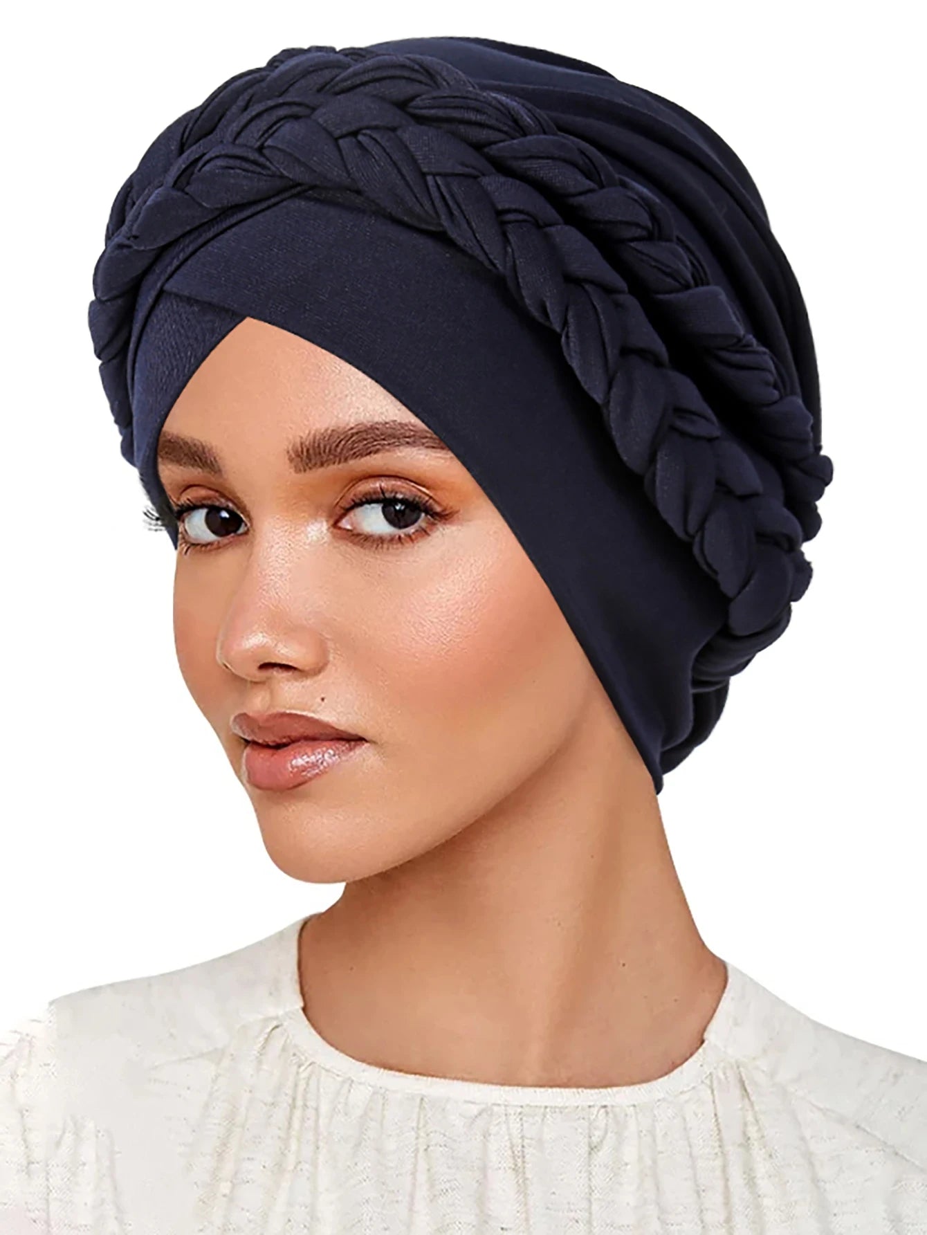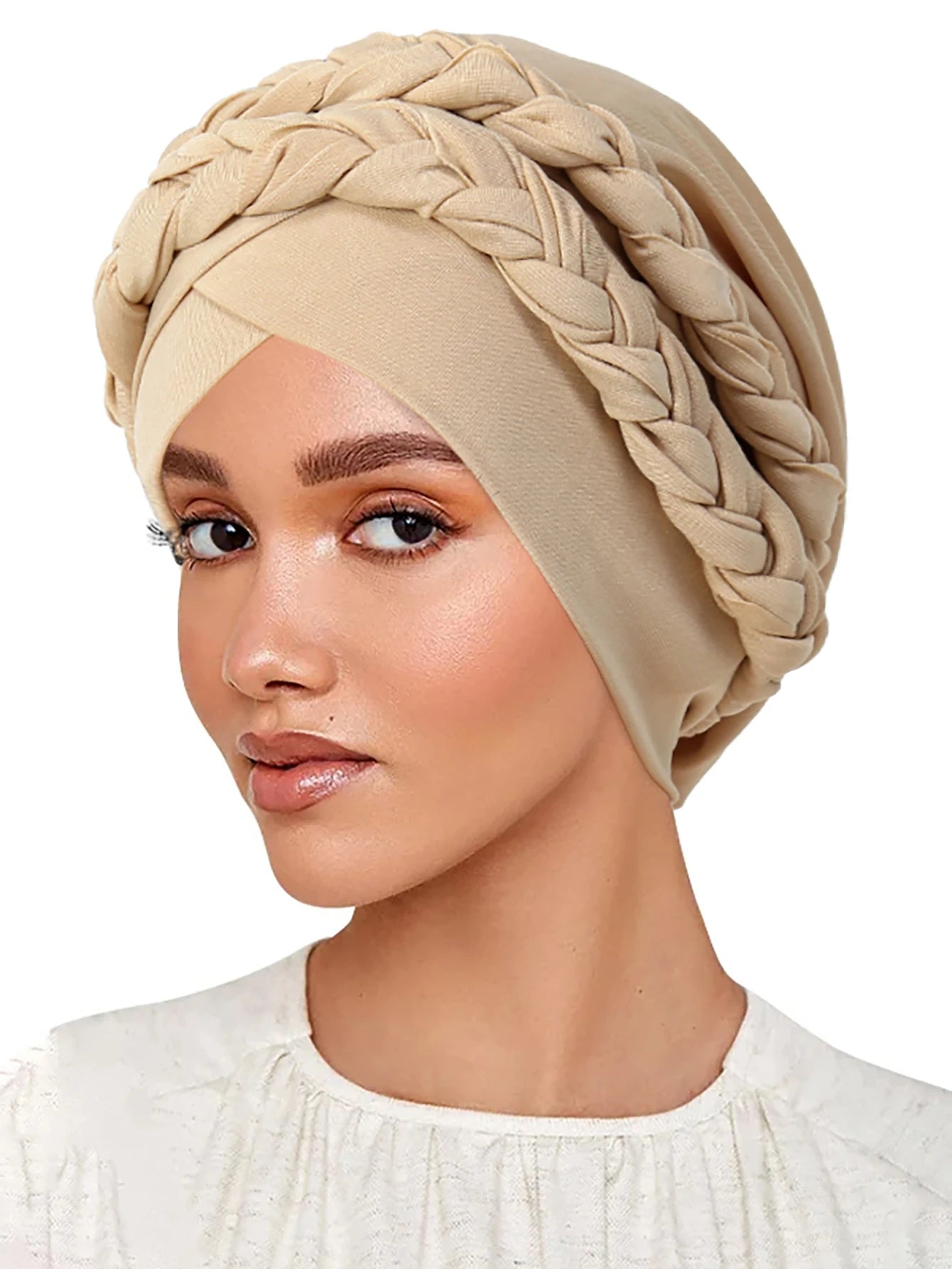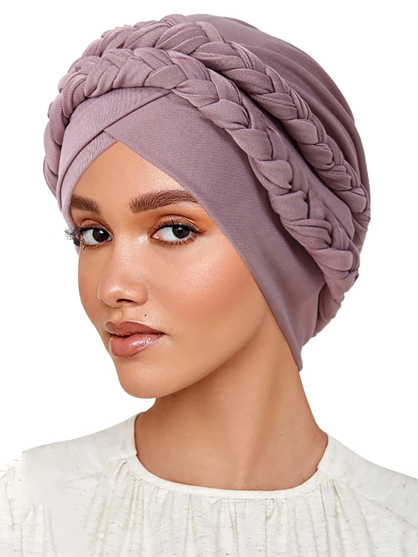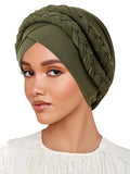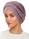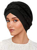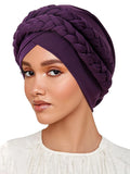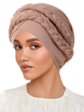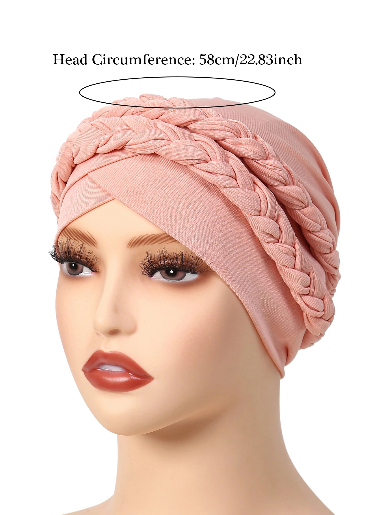 Saashi Trendy Braided Muslim Turban Cap for Women Solid Color Hijab Head Wrap Scarf