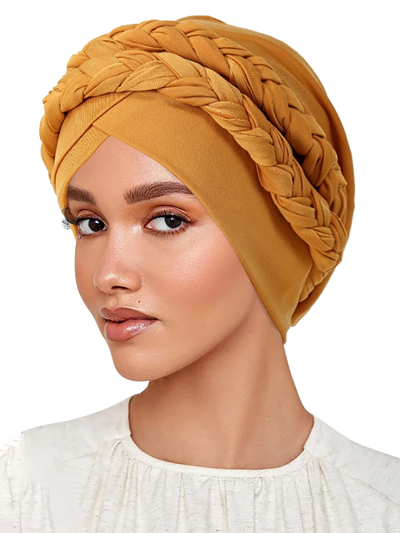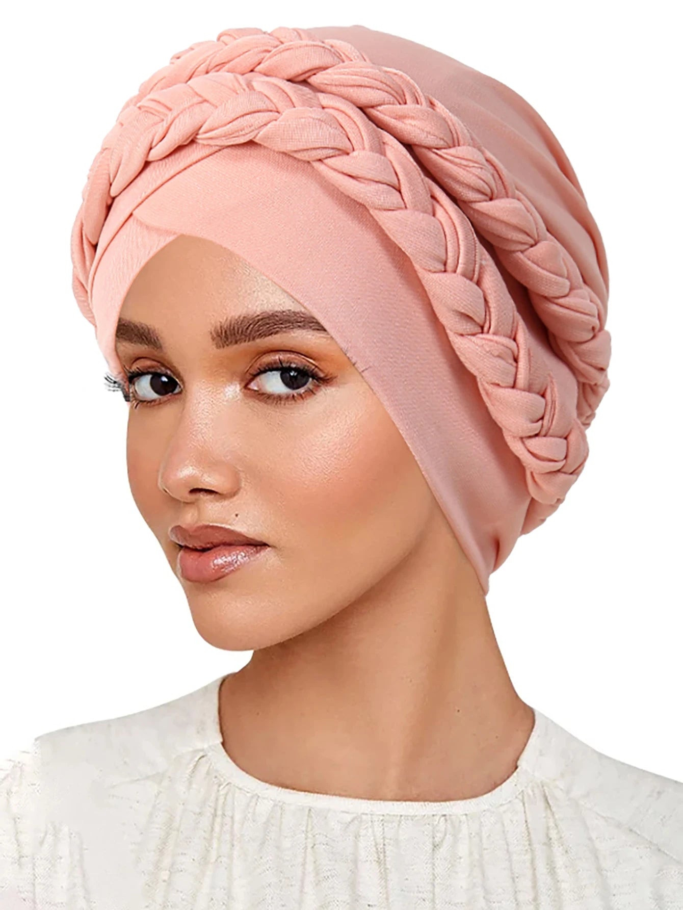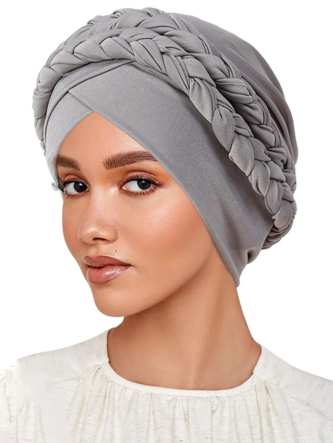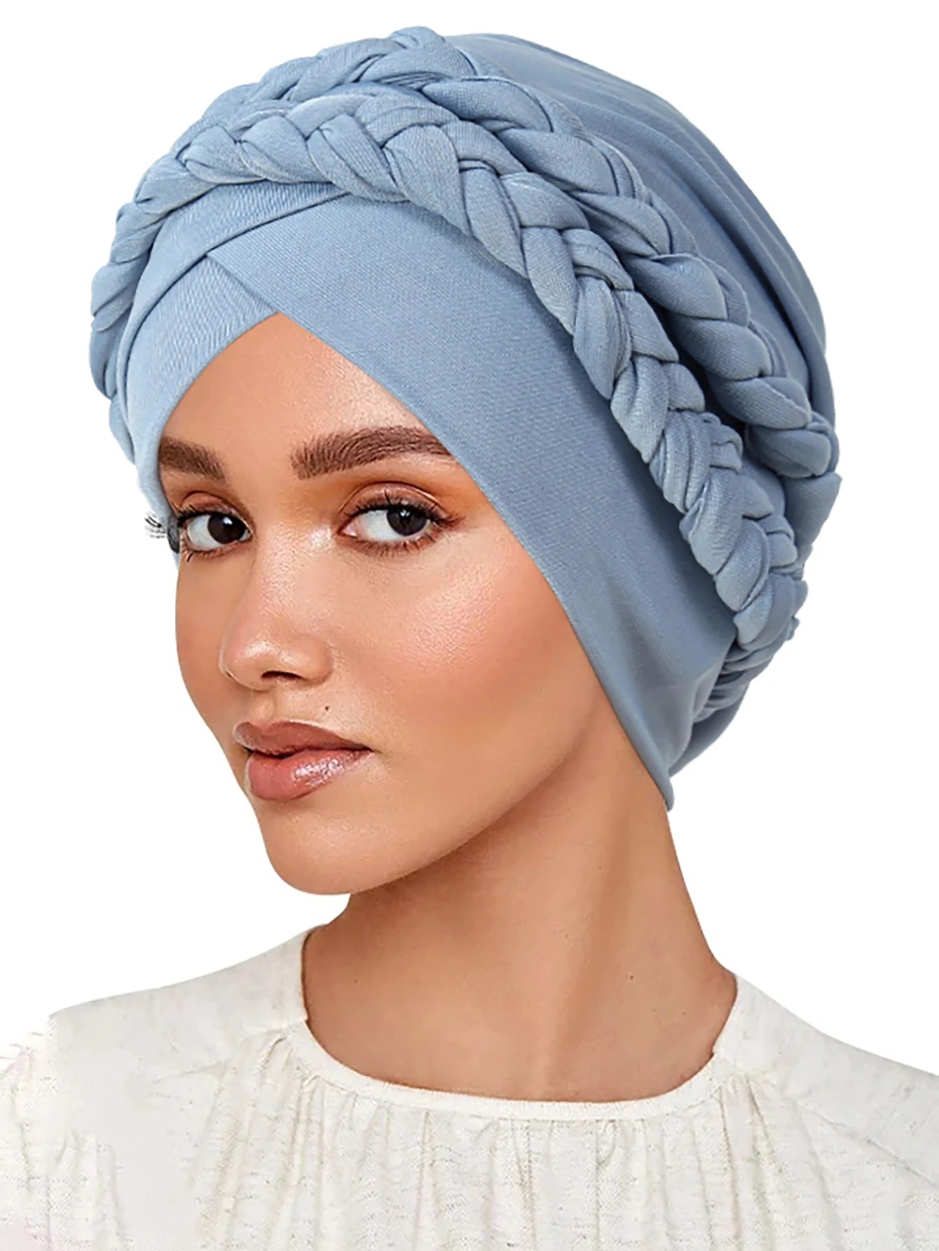 Saashi Trendy Braided Muslim Turban Cap for Women Solid Color Hijab Head Wrap Scarf