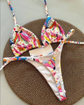 Saashi Women's Halter Lace-up Bikini Set with Thong Bottoms
