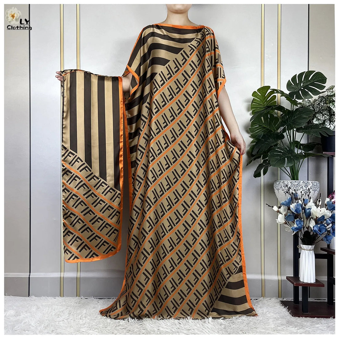 Saashi Muslim Abaya for Women Printed Silk Loose Maxi Dress with Belt and Turban