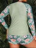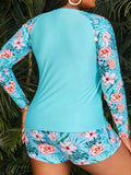 Saashi 2023 Tropical Long Sleeve Swimsuit Women Plus Large Size