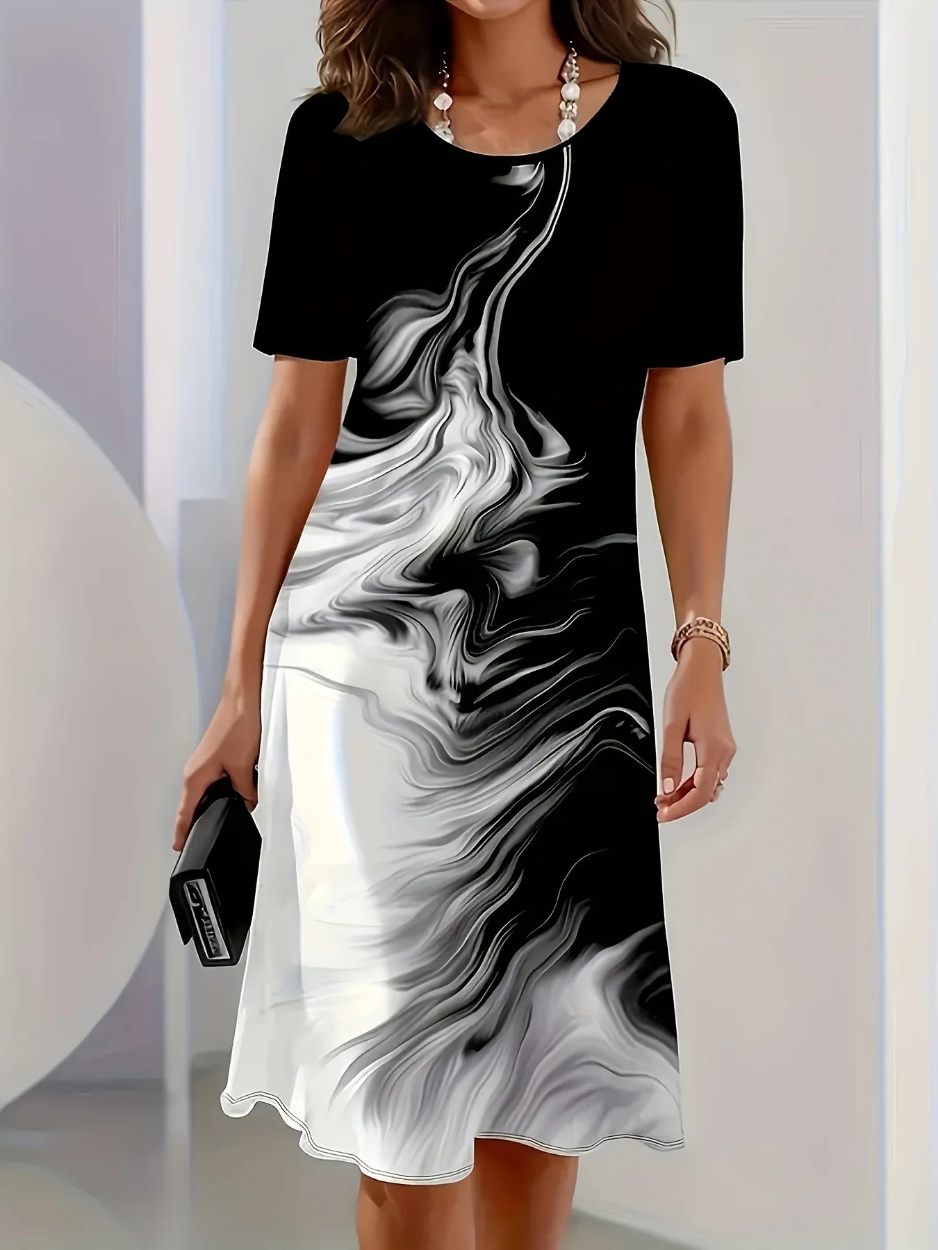 Saashi 3D Printed Summer T-Shirt Dress for Women Casual Loose Fit Beachwear with Short Sleeves