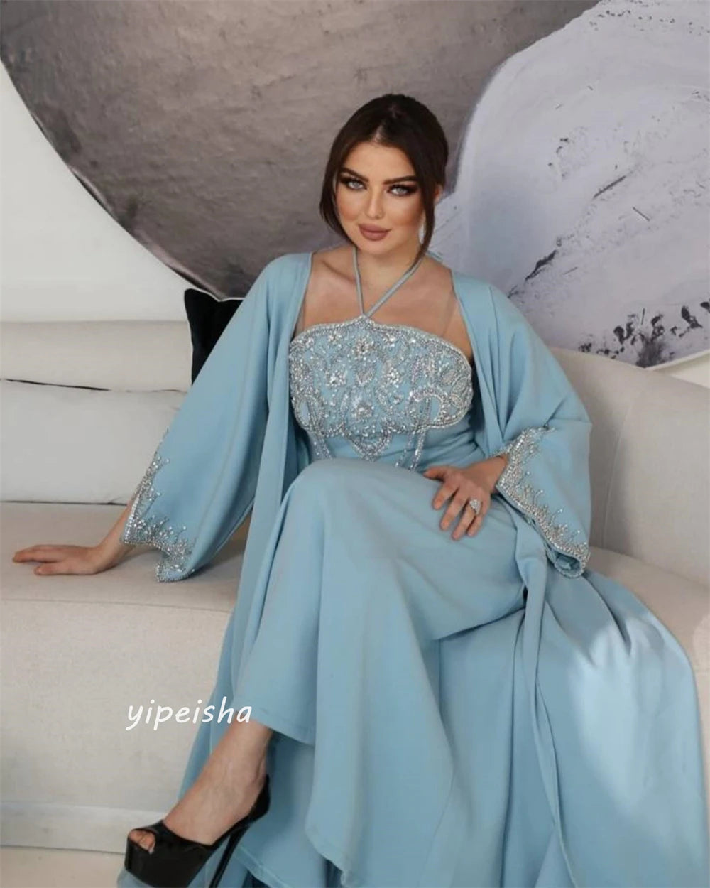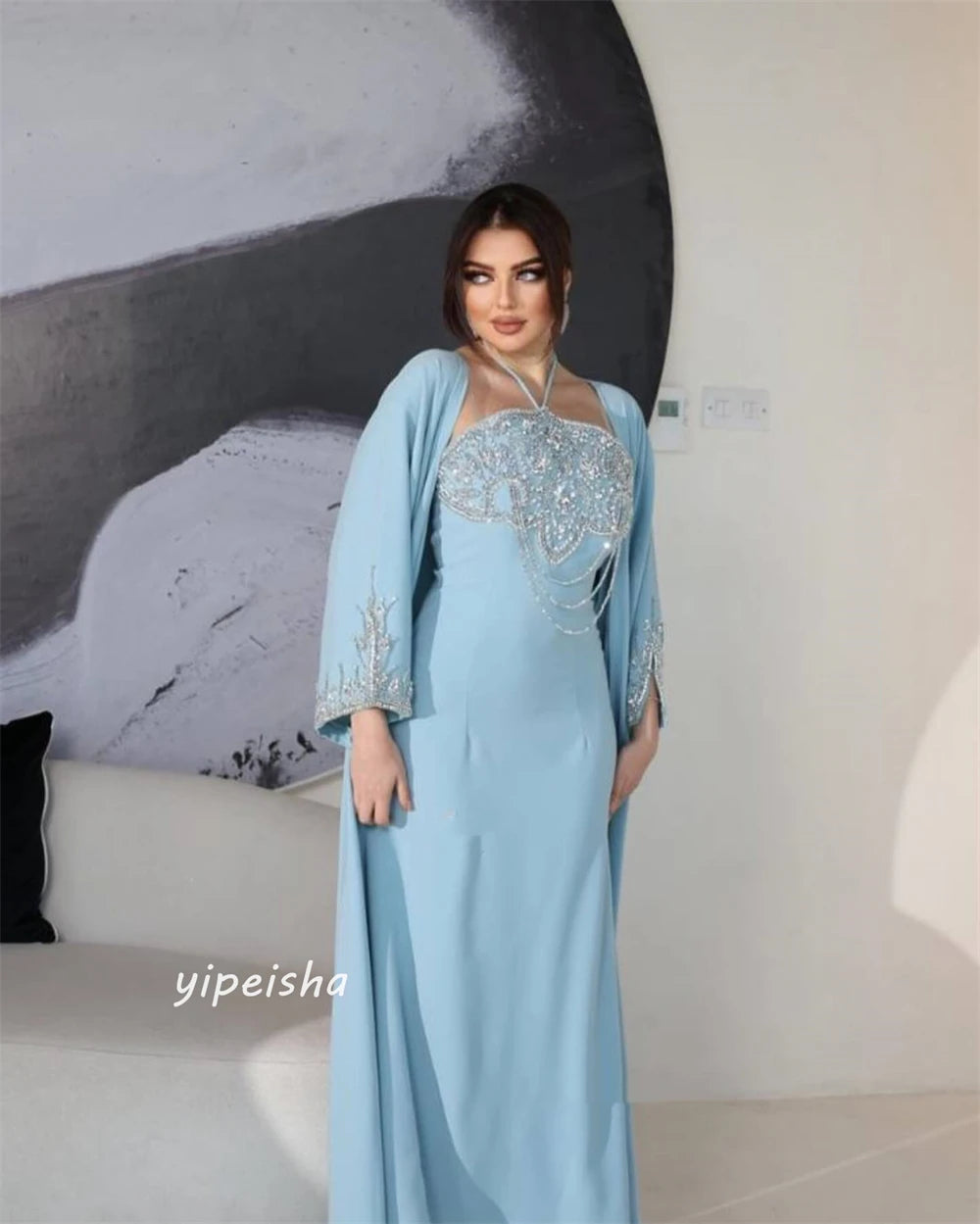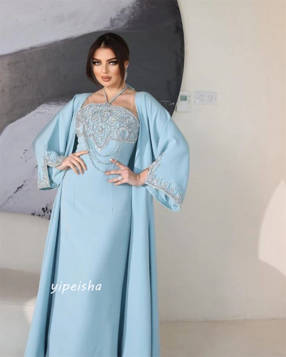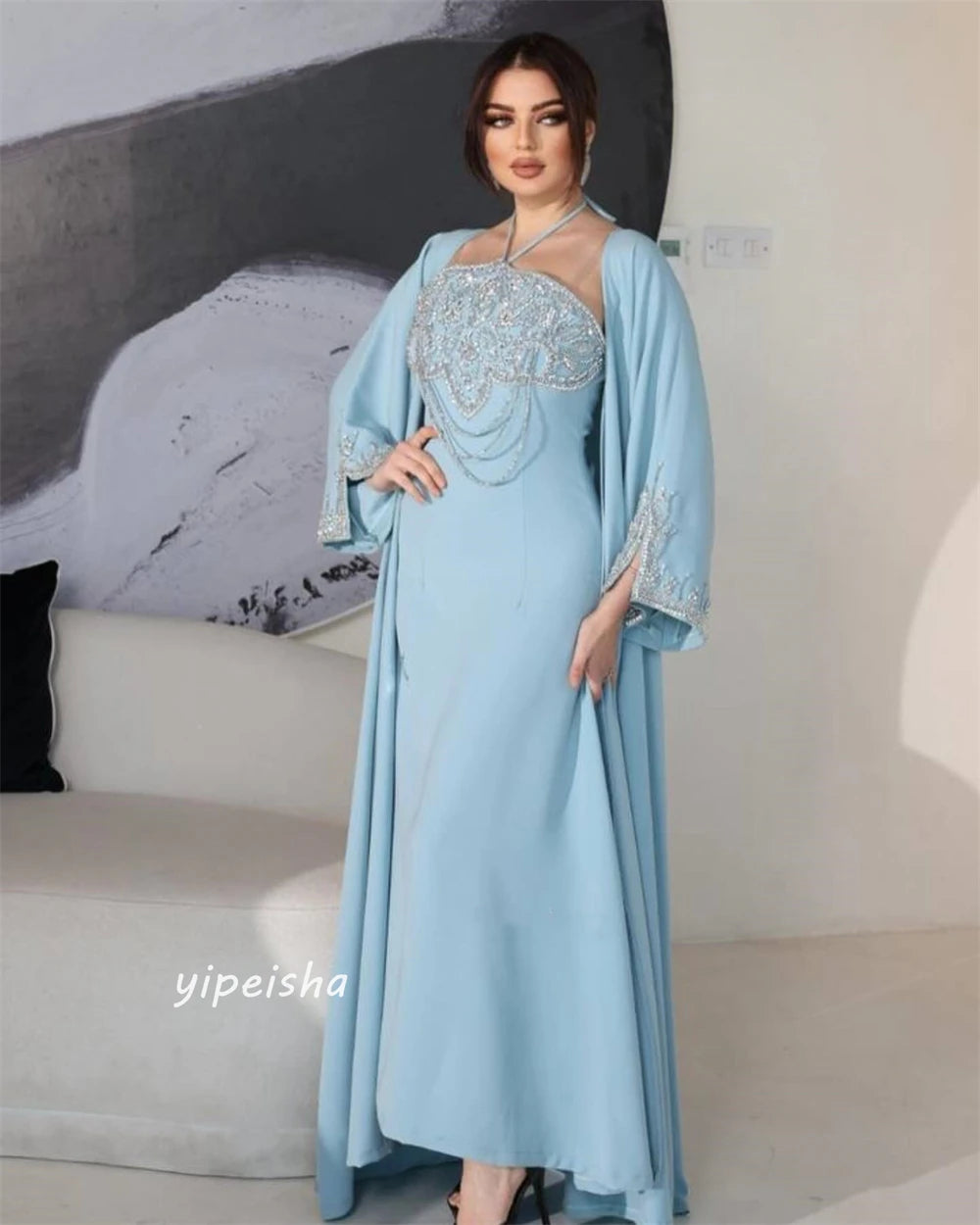 Saashi Beaded Draped A-Line Halter Dress – Customized Midi Occasion Gown for Women Beach Events