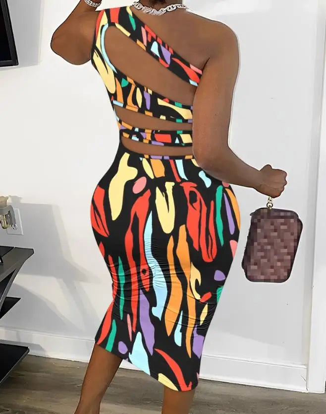 Saashi Camouflage Mid-Calf Bodycon Dress