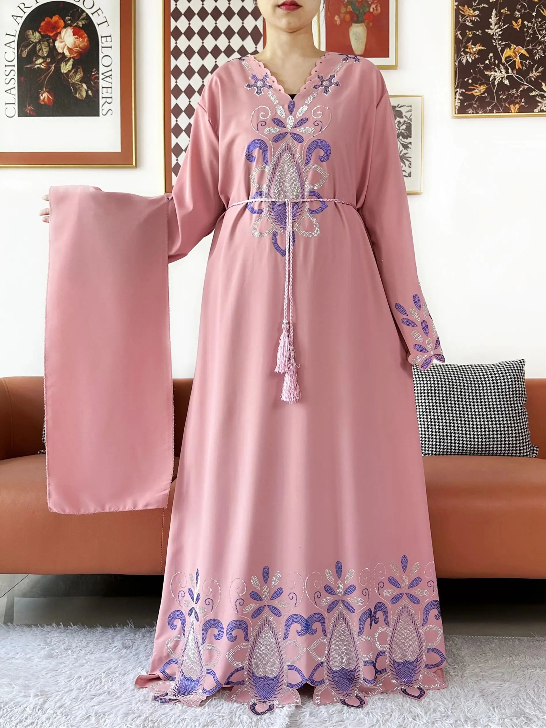 Saashi Diamond Chiffon Muslim Abaya Dress for Women Long Sleeve Party Robe Dubai Turkey Style