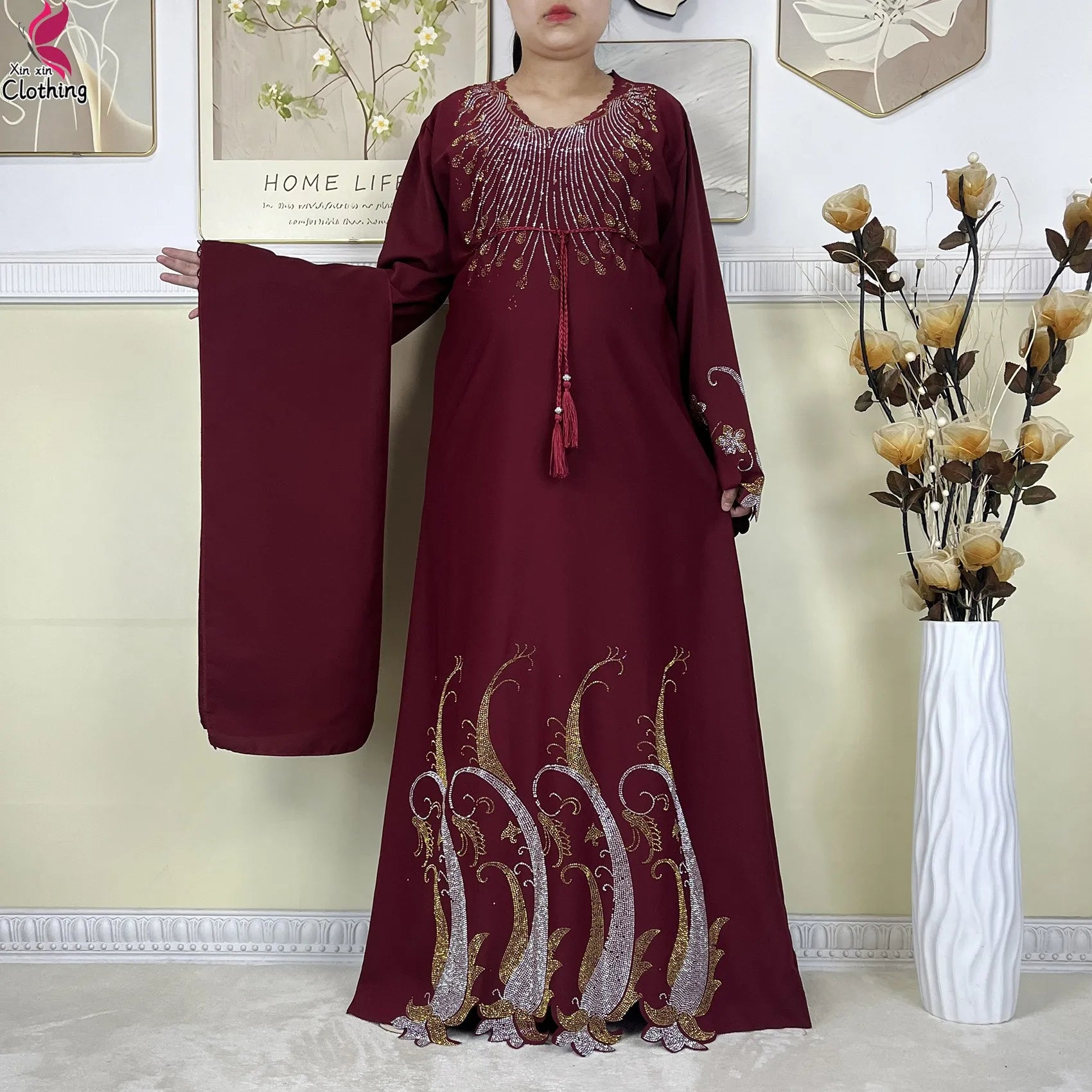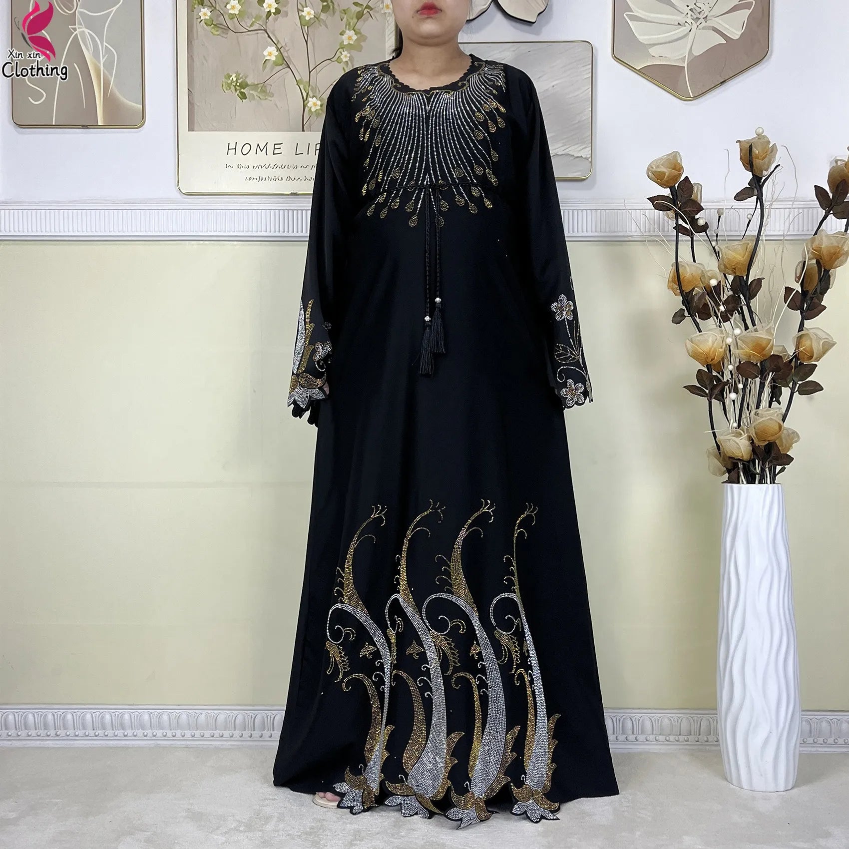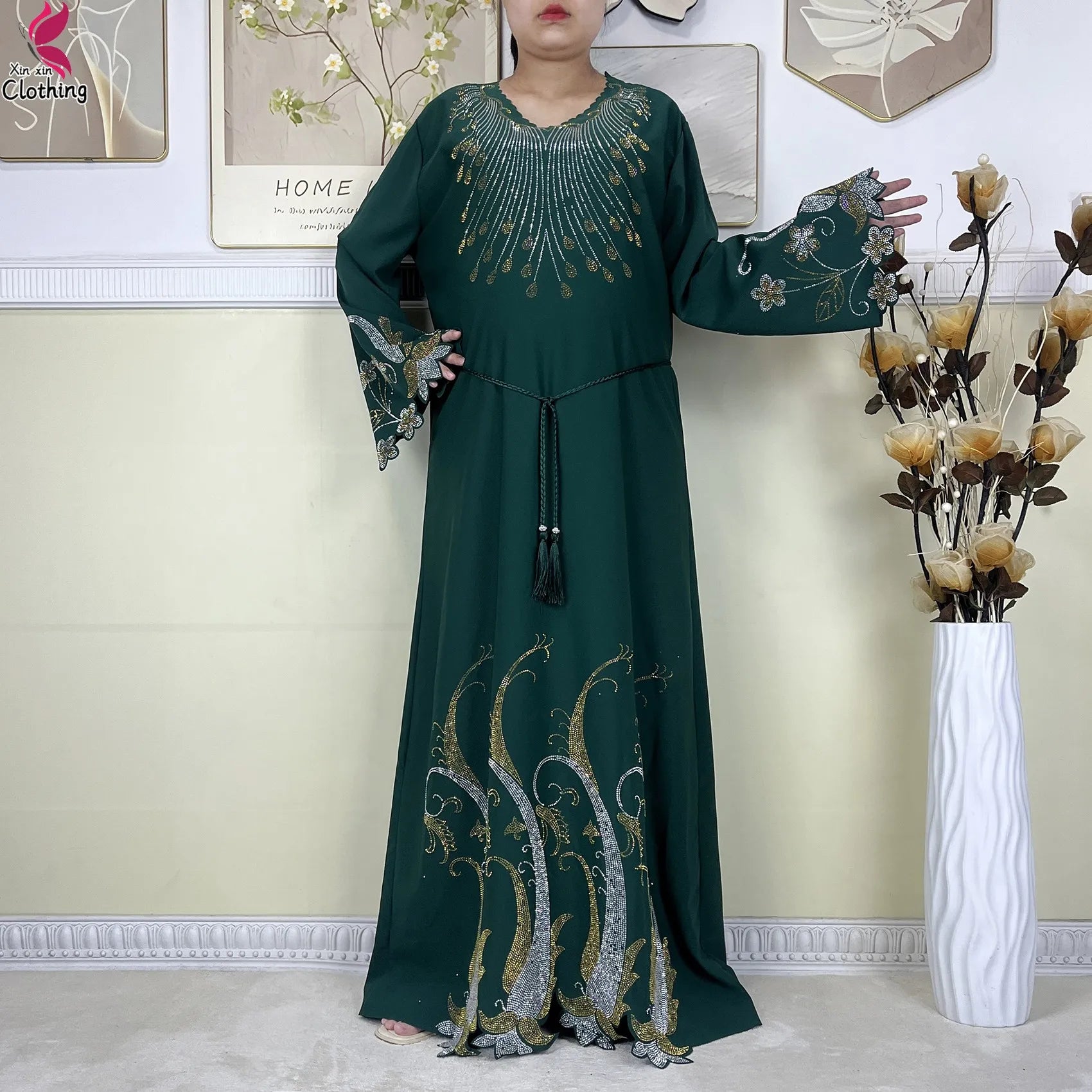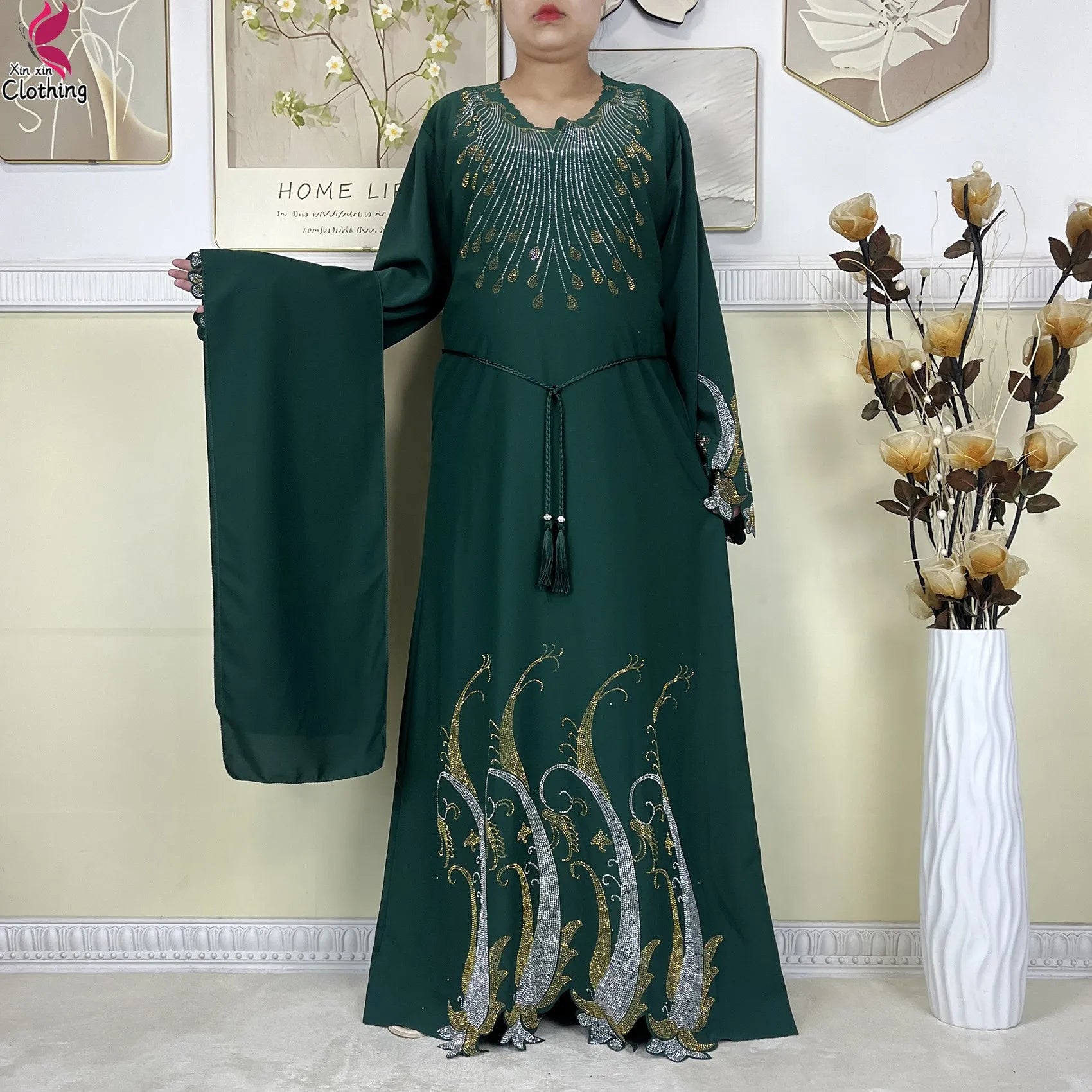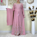 Saashi Elegant Chiffon Abaya Dress for Women with Long Sleeves and Diamond Details