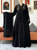 Saashi Elegant Chiffon Open Abaya with Zipper for Women Islamic Cardigan Dress Outfit