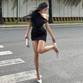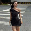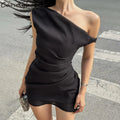 Saashi Elegant Slash Neck High Waist Mesh Bodycon Mini Dress Solid Color Party for Women
