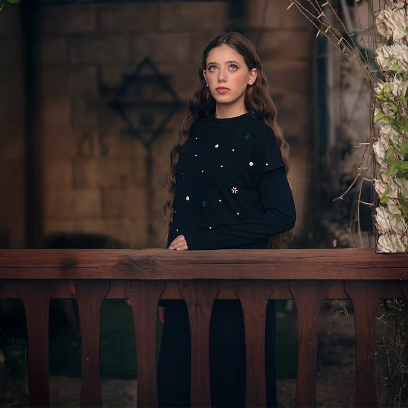 Saashi Floral Pearl Maxi Dress for Women – Long Sleeve Ribbed Casual Round Neck Wear XS–XXXL