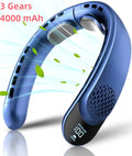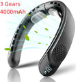 Saashi New Quad-Core USB Neck Fan with Turbine Vaneless Design, Digital Display, and 4000mAh Battery.