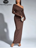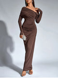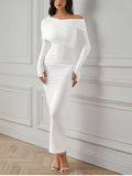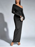 Saashi One Shoulder Ruched Bodycon Maxi Dress – Asymmetric Long Sleeve Fashion Party Wear for Women