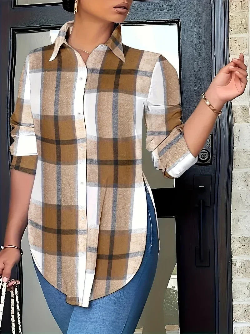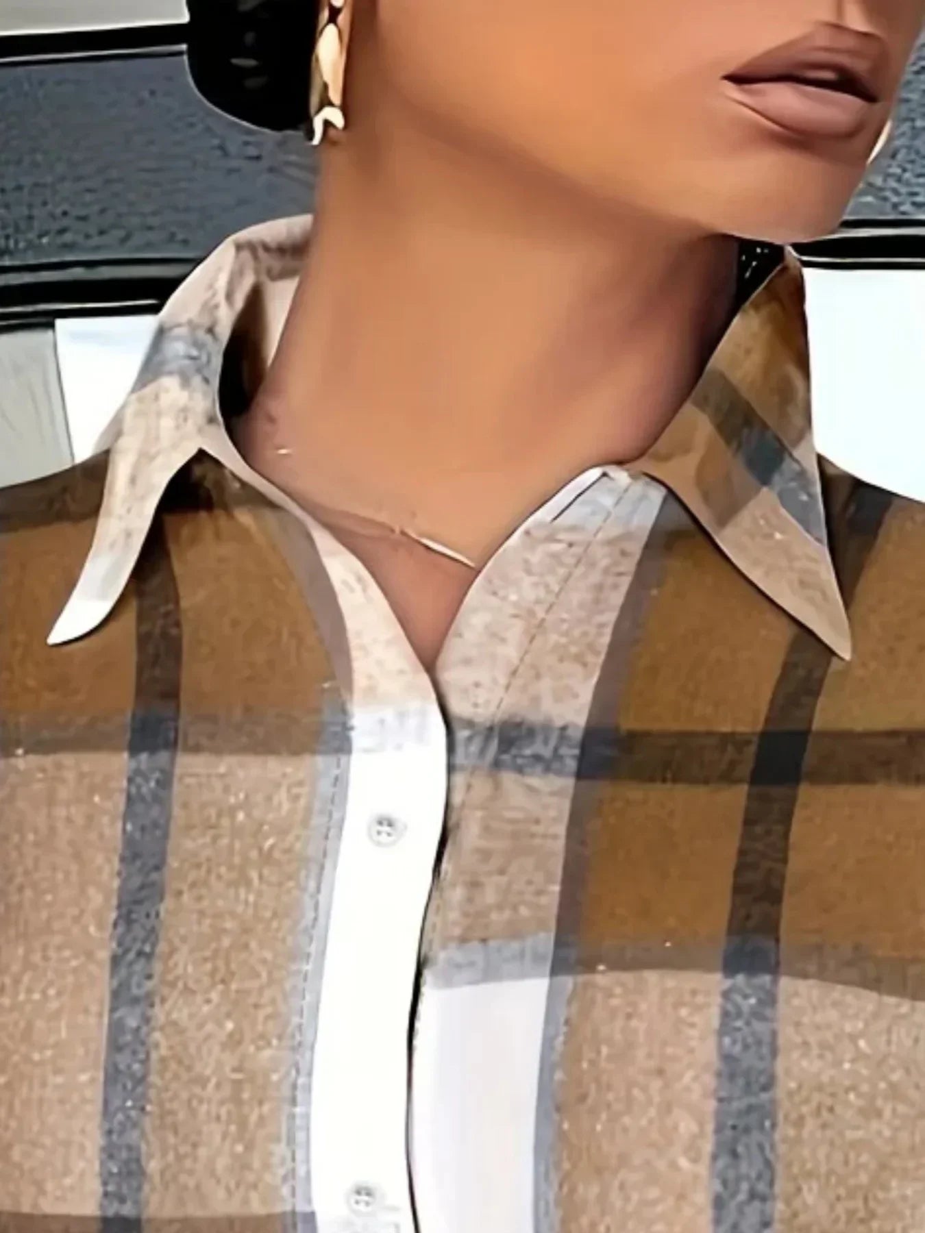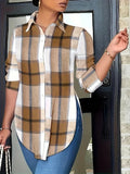 Saashi Plus Size Checkered Print Polo Collar Shirt for Women 1XL-5XL Casual Loose Fit