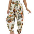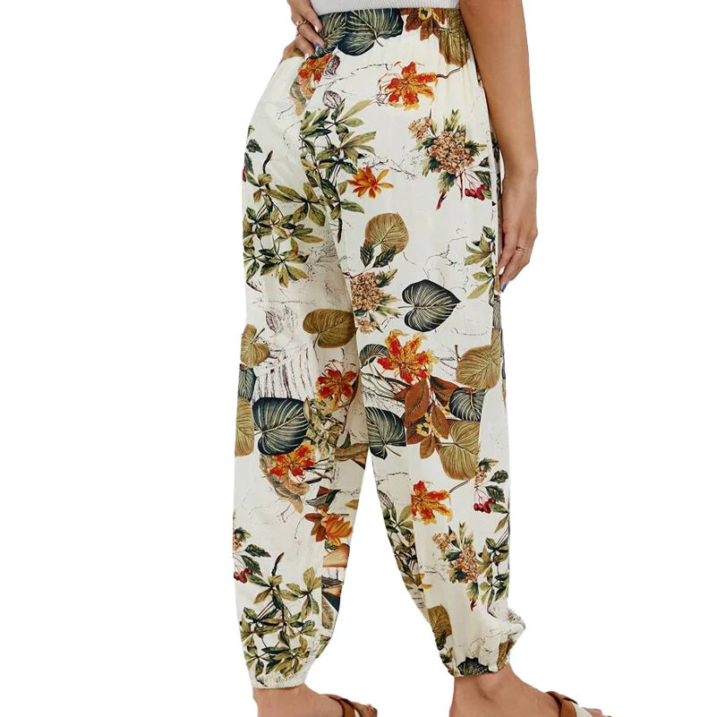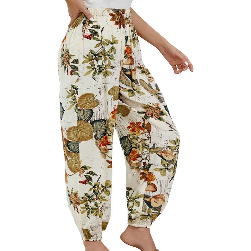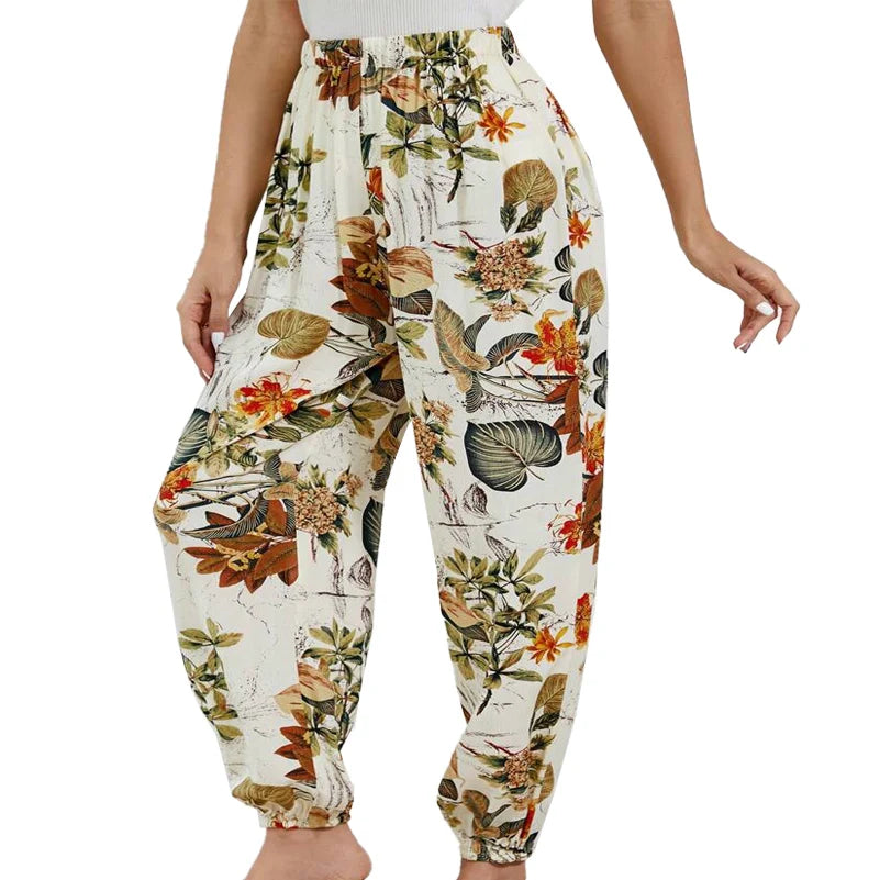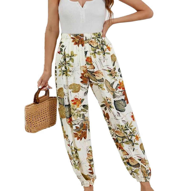 Saashi Plus Size Floral Print Slim Pants for Women with Elastic Waist and Stretch Fabric