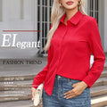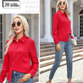 Saashi Plus Size Red Button-Up Shirt for Women Slim Fit Long Sleeve Office Blouse