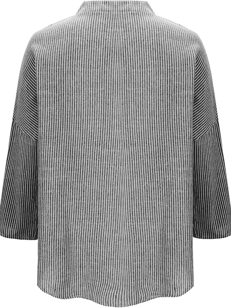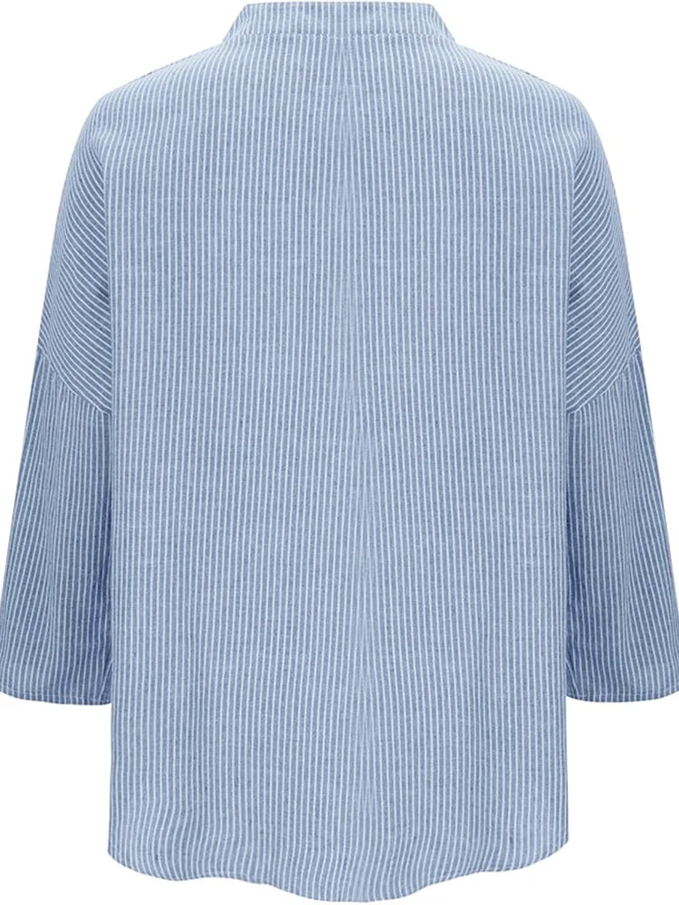 Saashi Plus Size Women’s V-Neck Striped Long Sleeve Button Shirt Casual Classic Fit Workwear