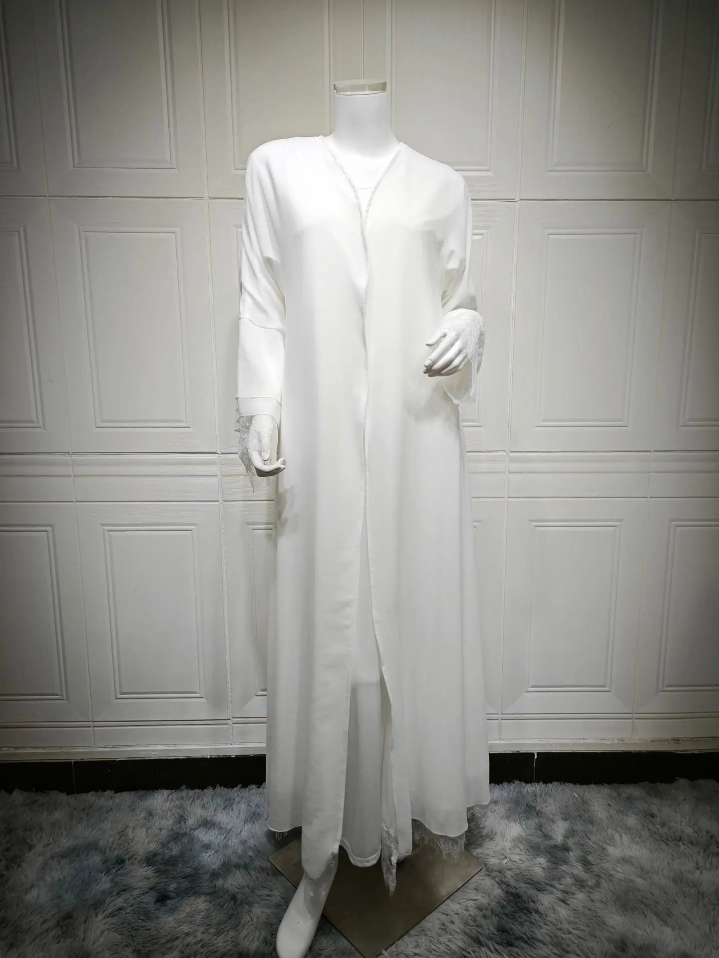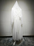 Saashi Solid White Open Abaya with Hijab Scarf for Muslim Women Elegant Moroccan Kaftan Style