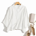 Saashi Summer Lapel Neck Tunic Shirt for Women Casual Loose Fit Workwear Blouse 3/4 Sleeve