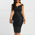 Saashi V-Neck Lace Dress for Women Short Sleeve Slim Fit Casual Summer Outfit