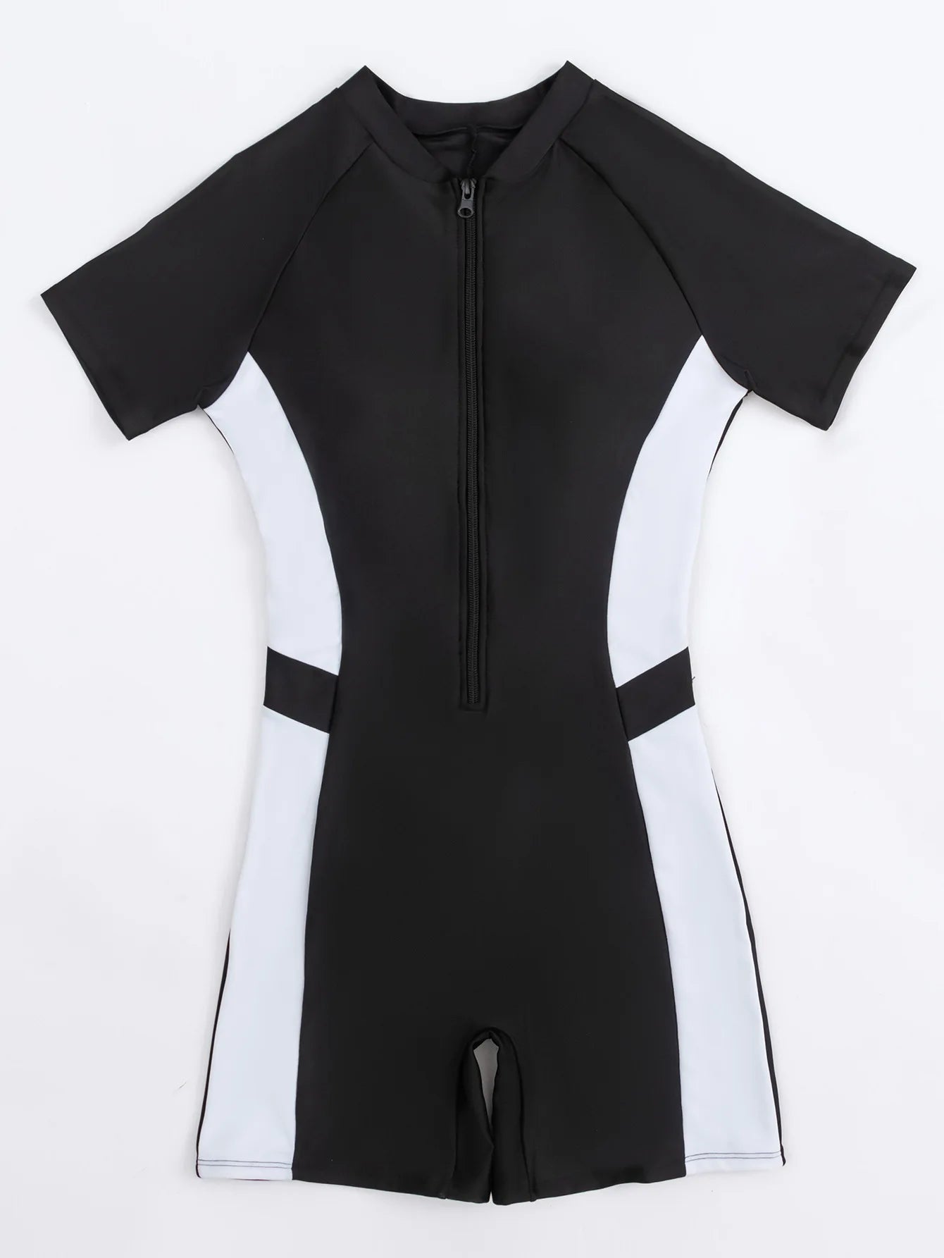Saashi Women’s UPF 50 Short Sleeve Rash Guard with Front Zip One-Piece Surf Swimsuit