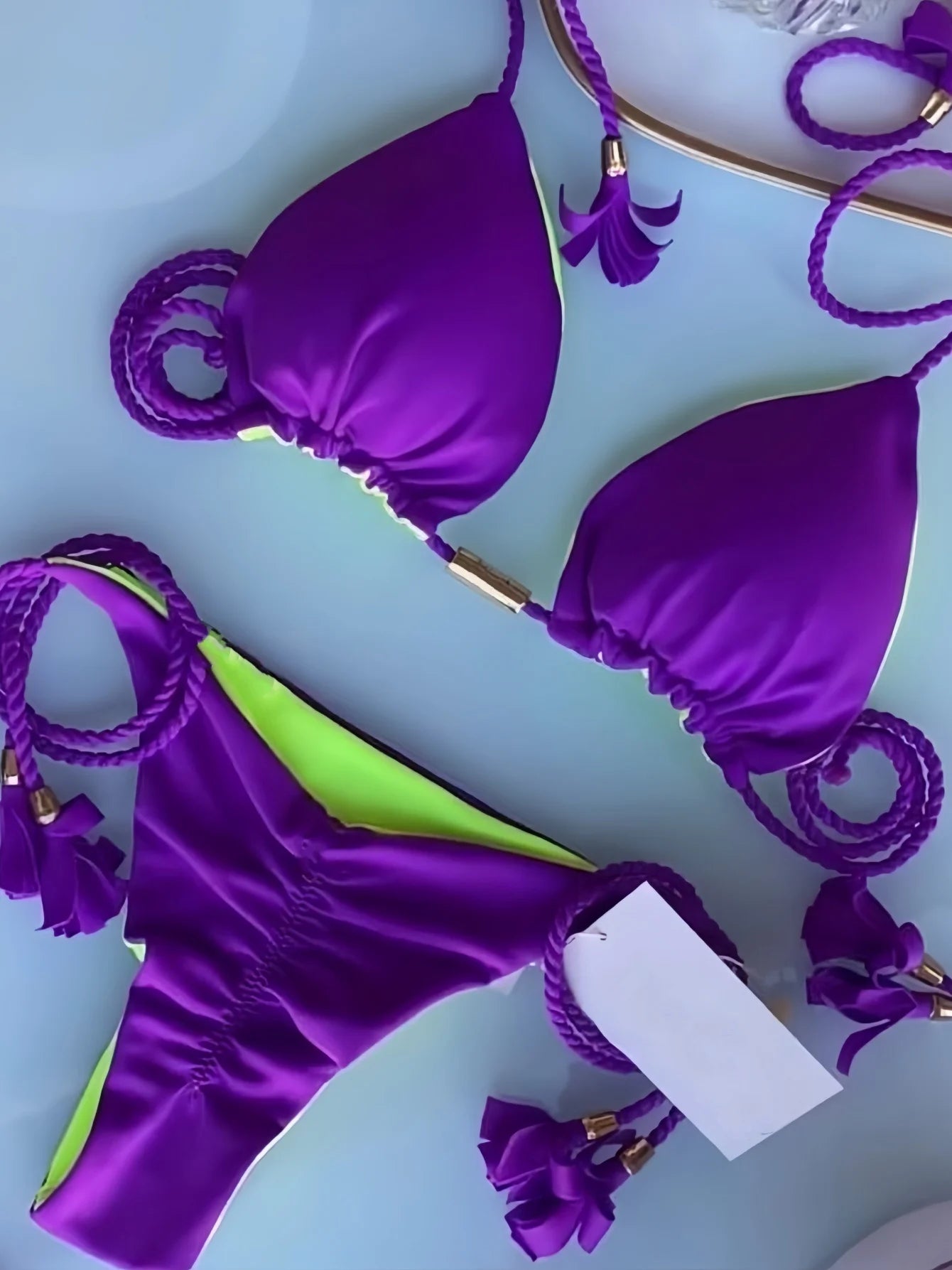 Saashi Women's Braided Rope Bikini Set - Solid Color Triangle Top