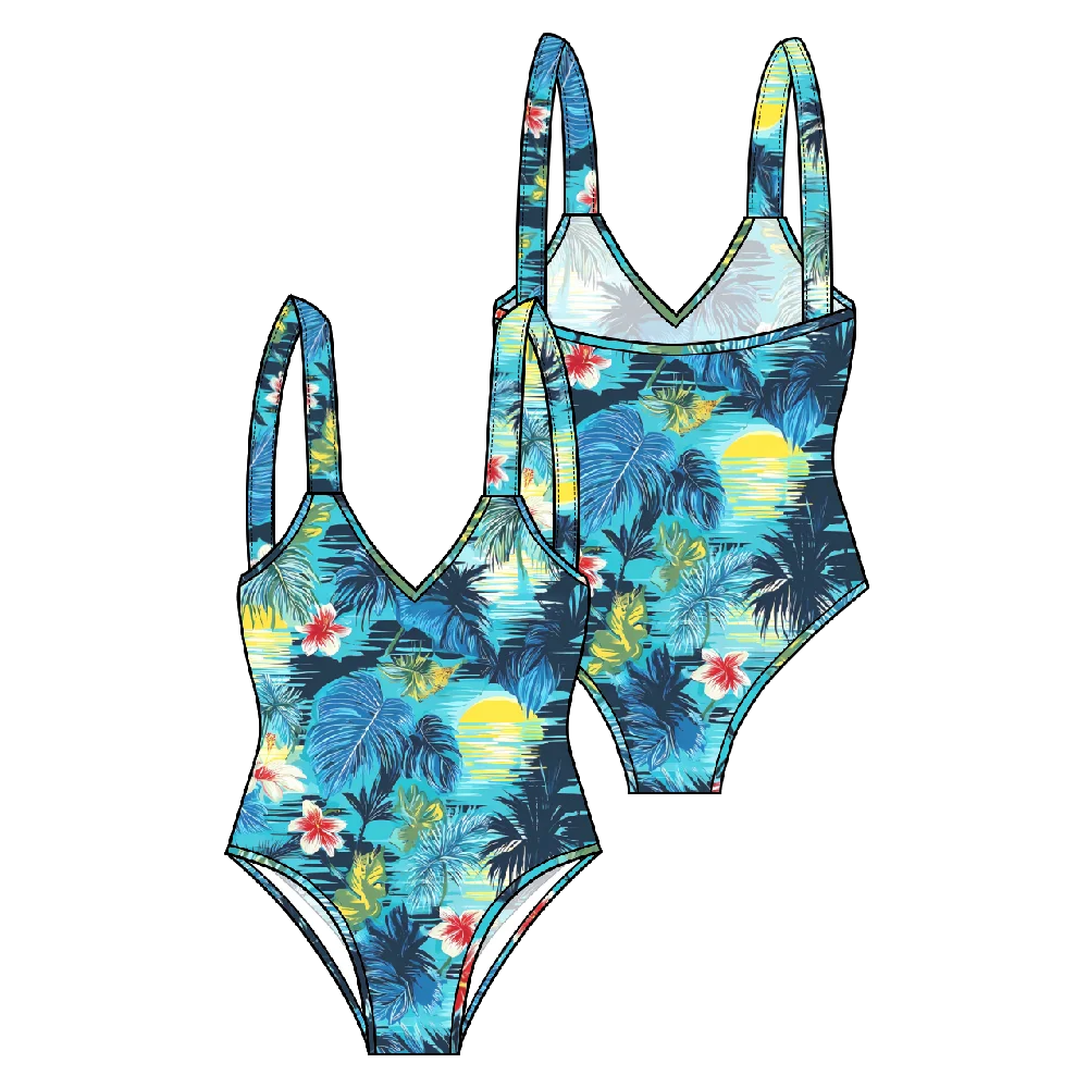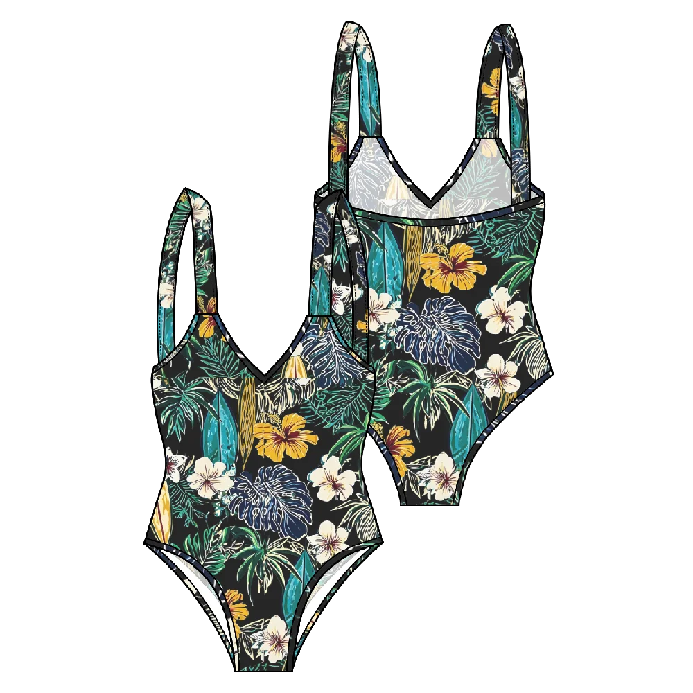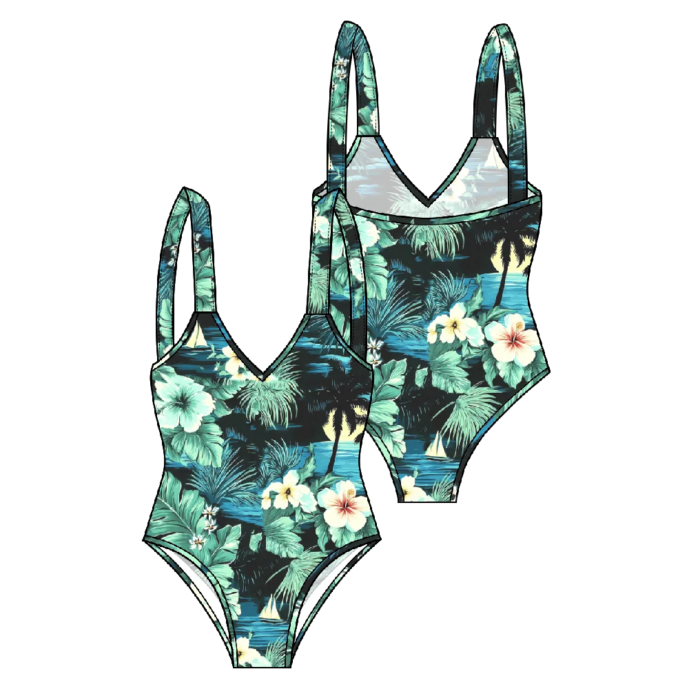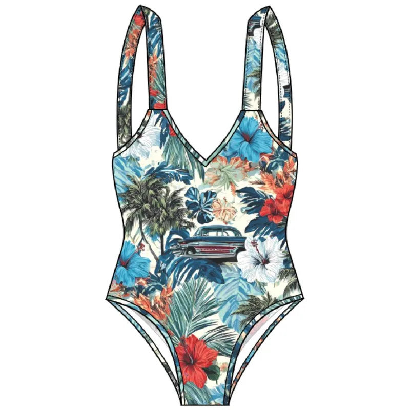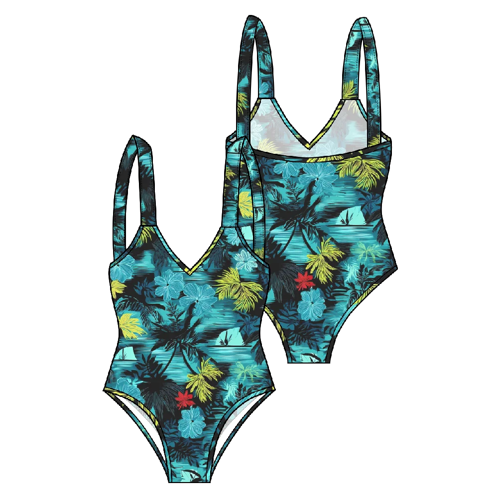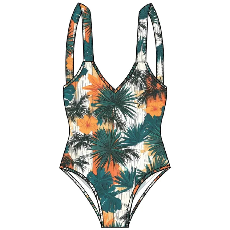 Saashi Women's Printed One-Piece Swimsuit with V-Neck and Backless Design