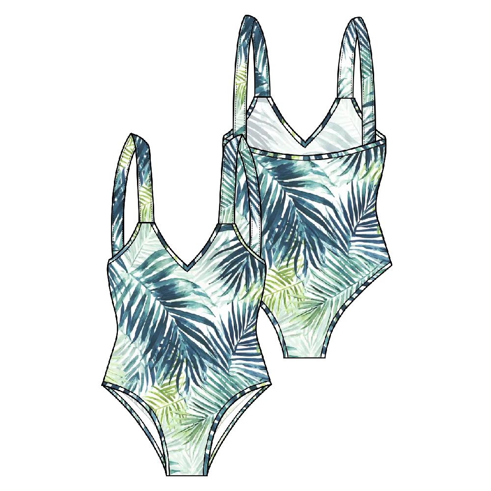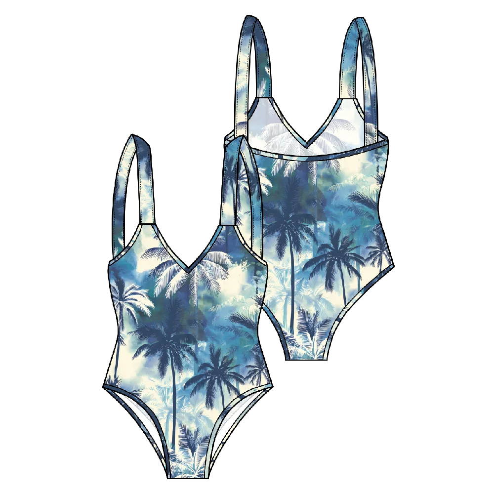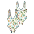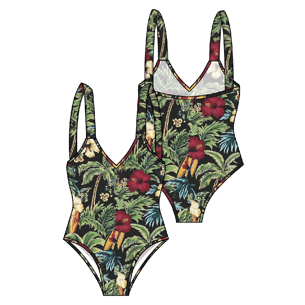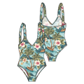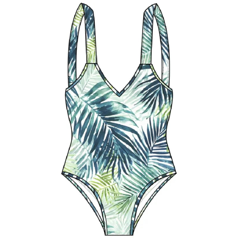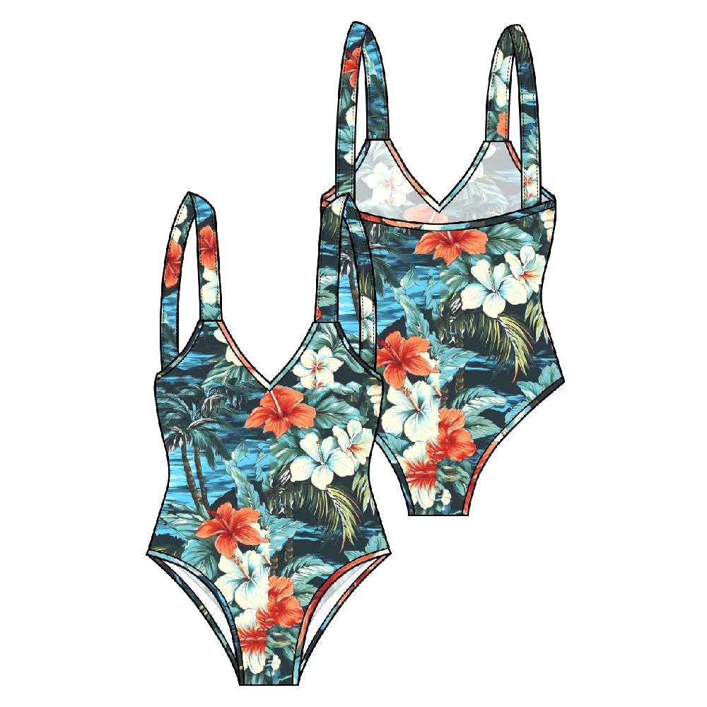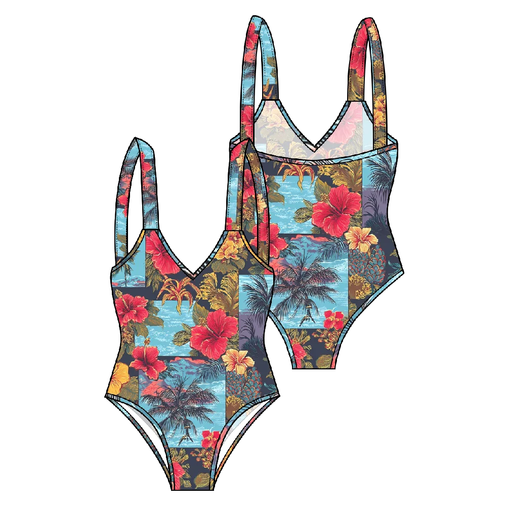 Saashi Women's Printed One-Piece Swimsuit with V-Neck and Backless Design