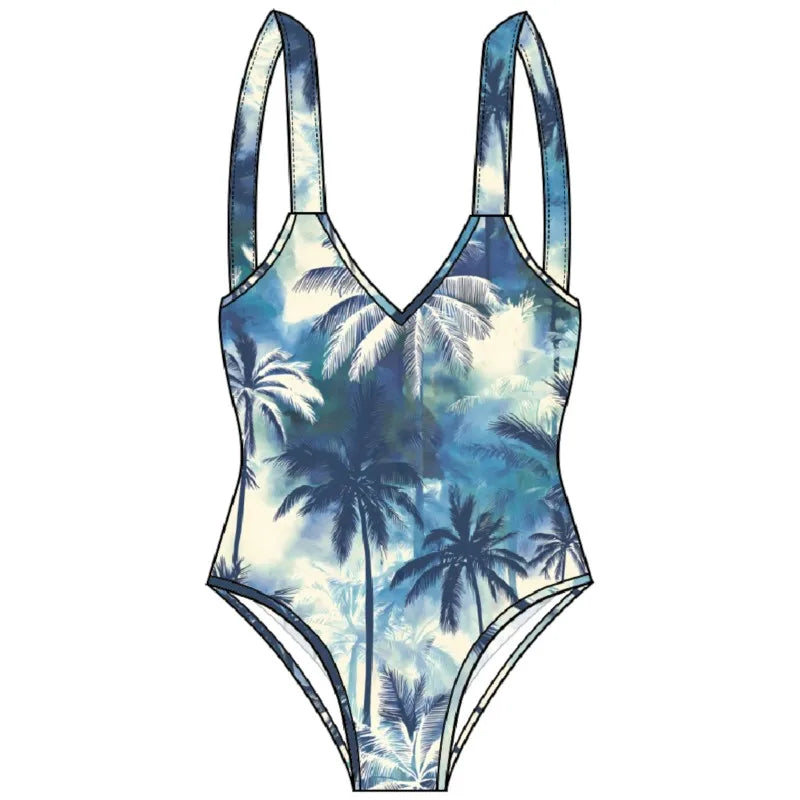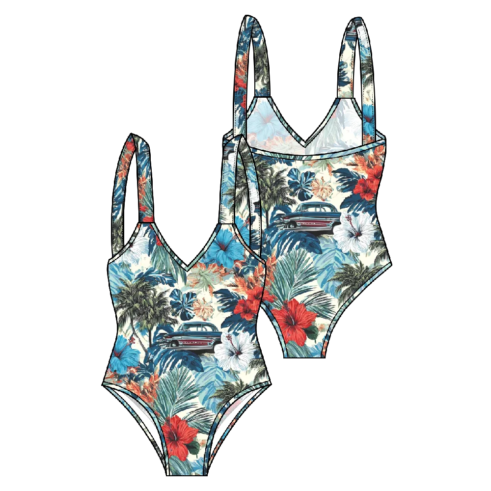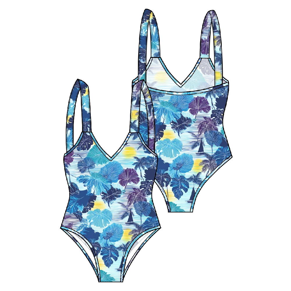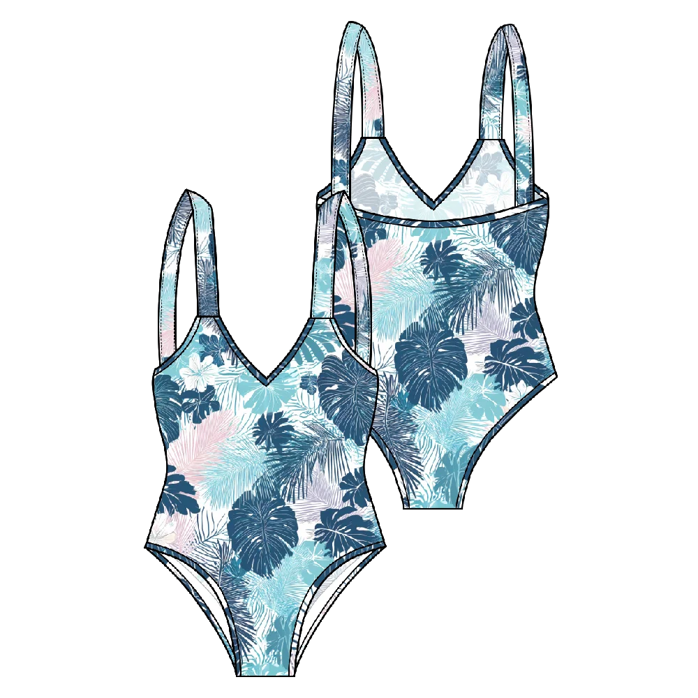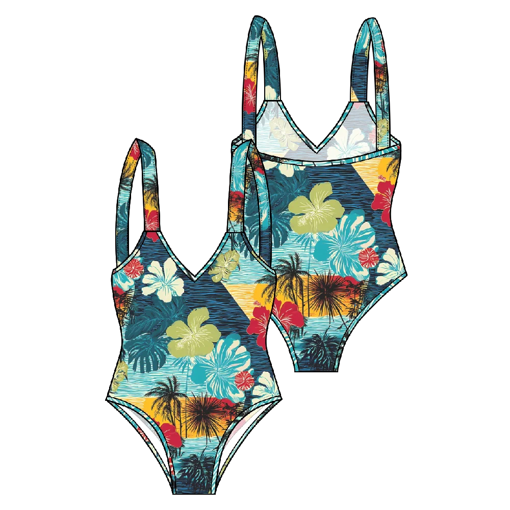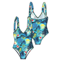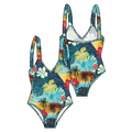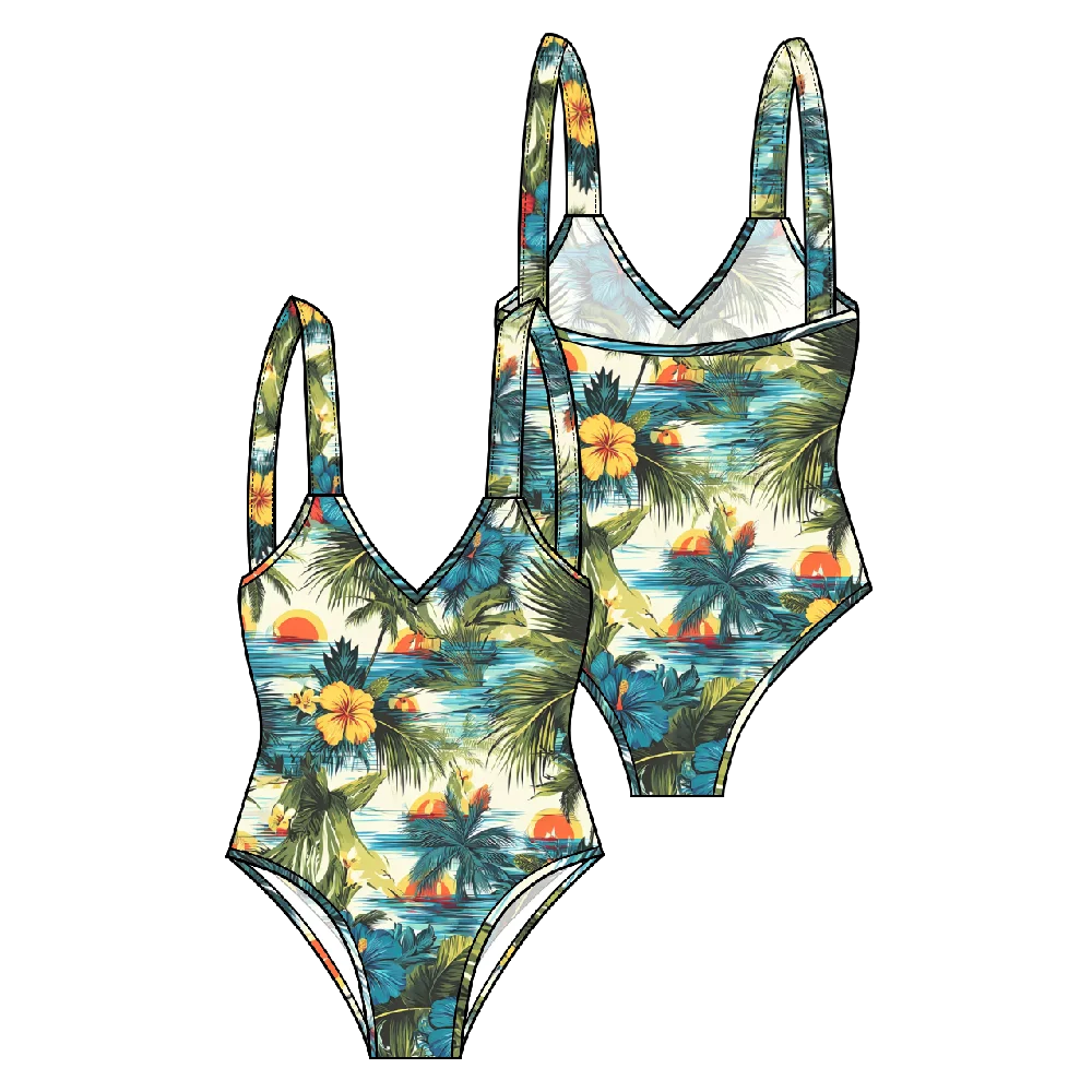 Saashi Women's Printed One-Piece Swimsuit with V-Neck and Backless Design