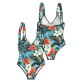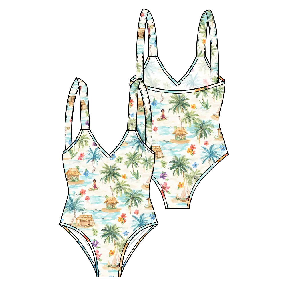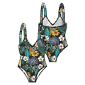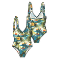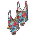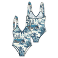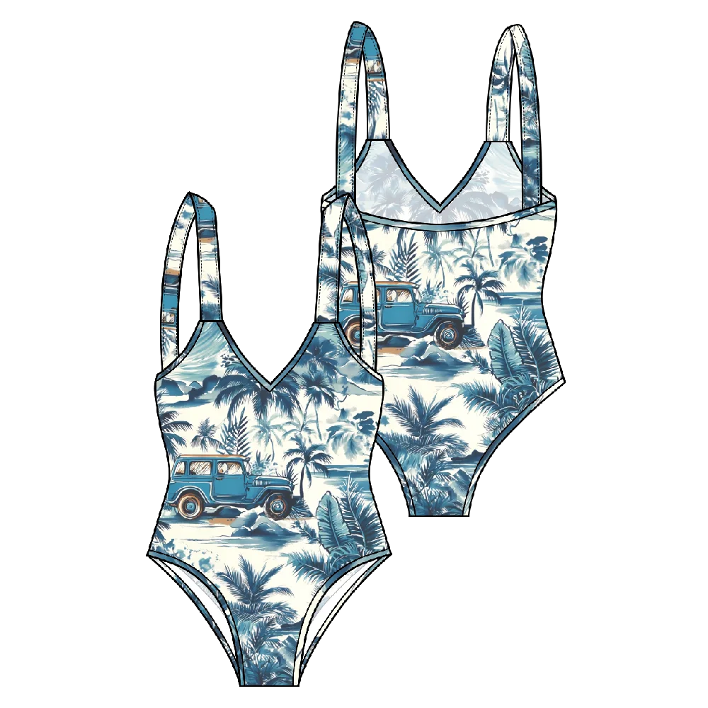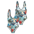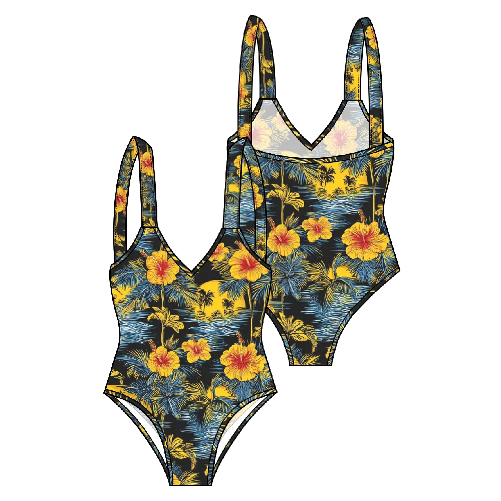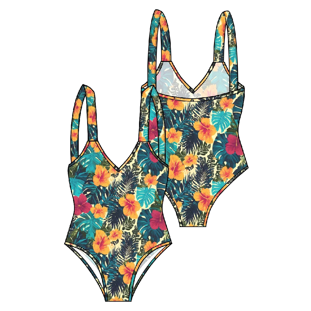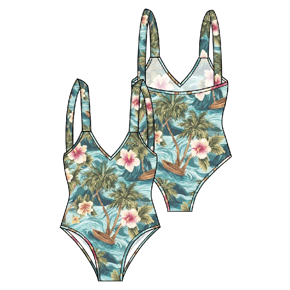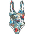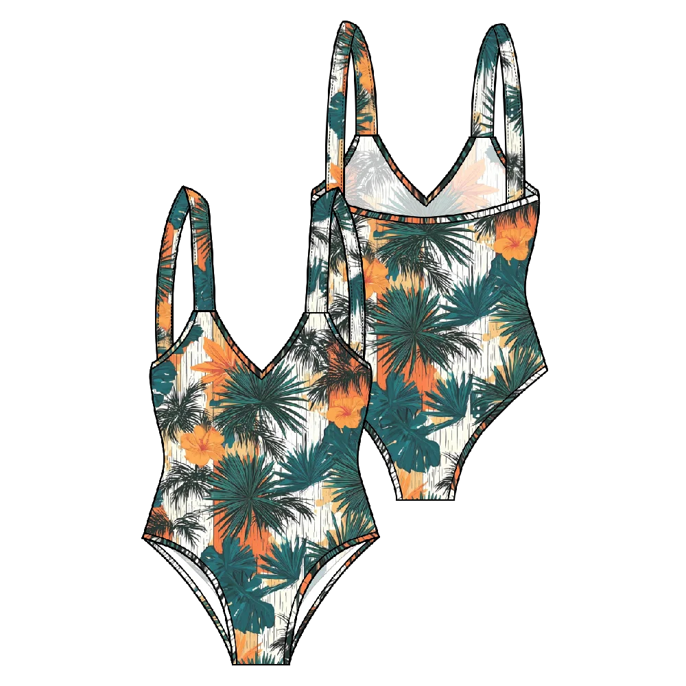 Saashi Women's Printed One-Piece Swimsuit with V-Neck and Backless Design