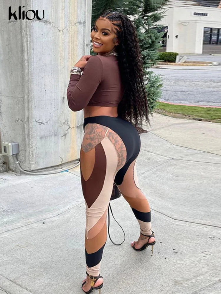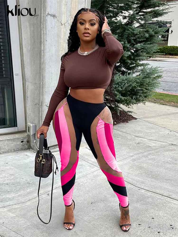 Saashi Y2K High Waist Mesh Patchwork Leggings for Women Body Shaping Sheath Pants